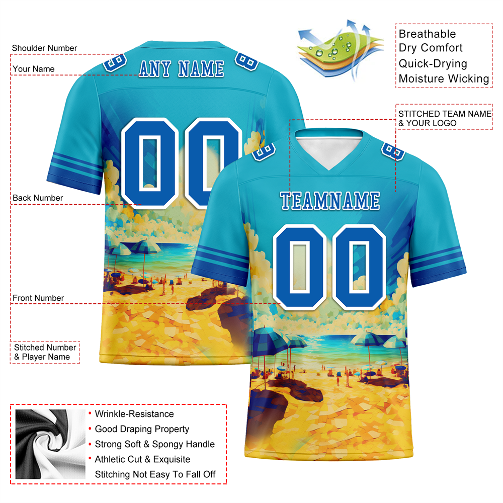 Custom Aqua Hawaii Blue Personalized Authentic Football Jersey FBJ02-bc0fa97
