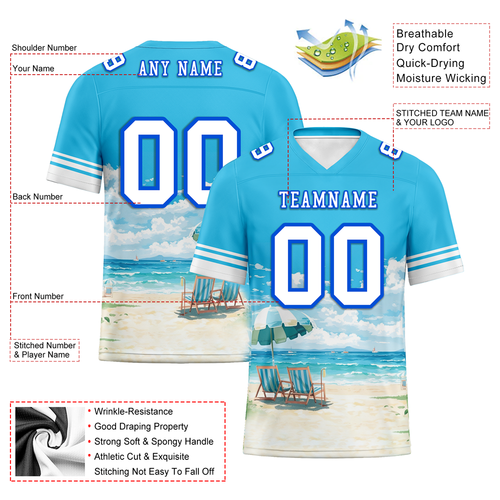 Custom Aqua Hawaii White Personalized Authentic Football Jersey FBJ02-bc0fa99