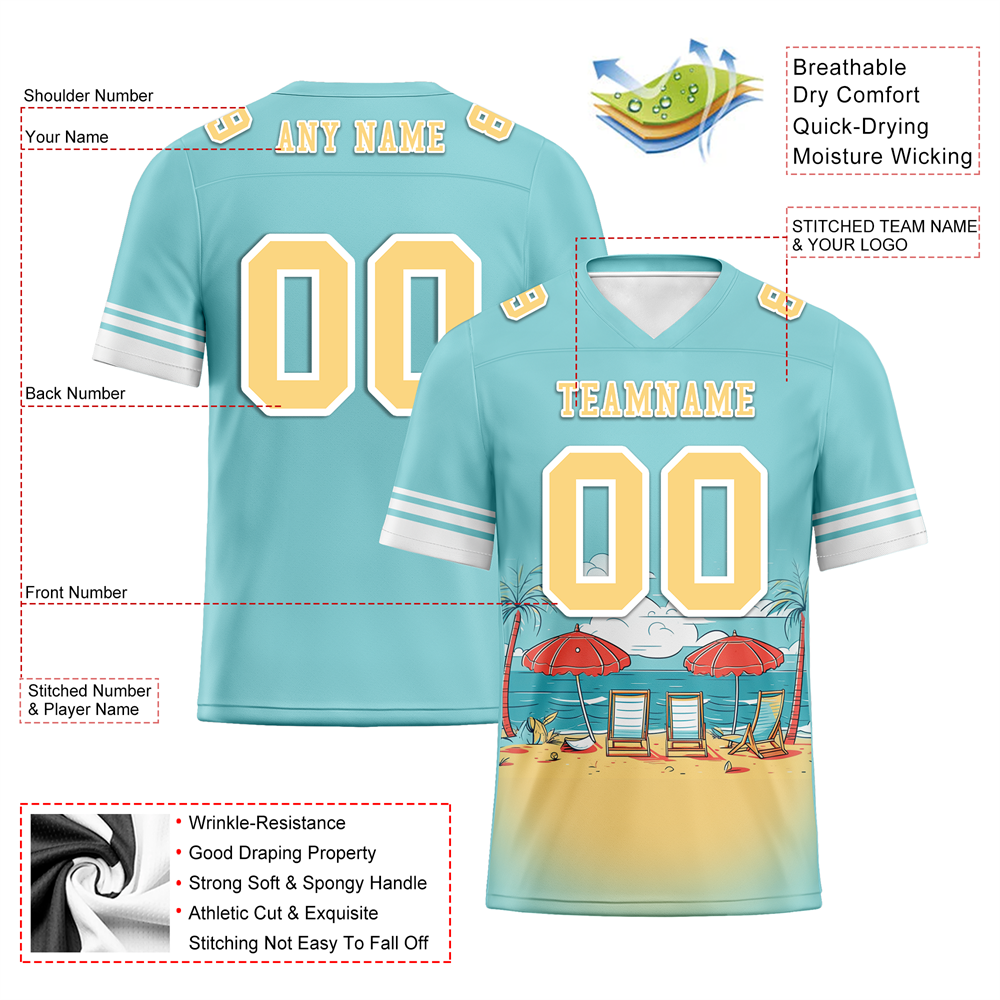 Custom Aqua Hawaii Yellow Personalized Authentic Football Jersey FBJ02-bc0fa9e