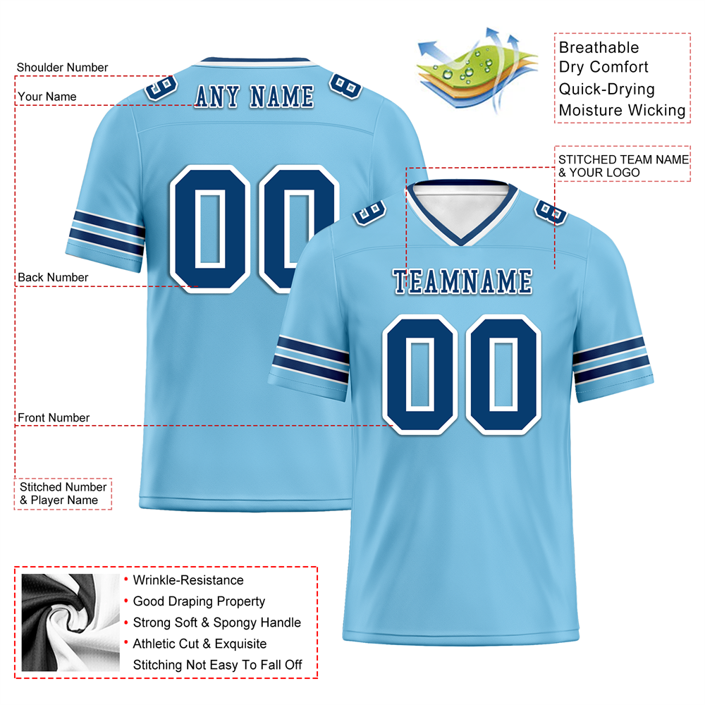 Custom Aqua Sleeve Stripes Blue Personalized Authentic Football Jersey FBJ02-bc0f089