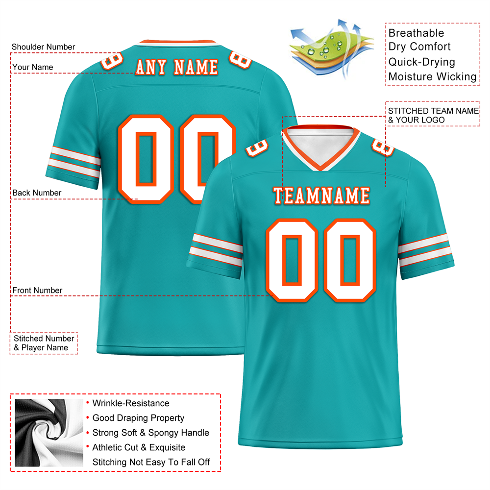 Custom Aqua Sleeve Stripes White Personalized Authentic Football Jersey FBJ02-bc0f07f
