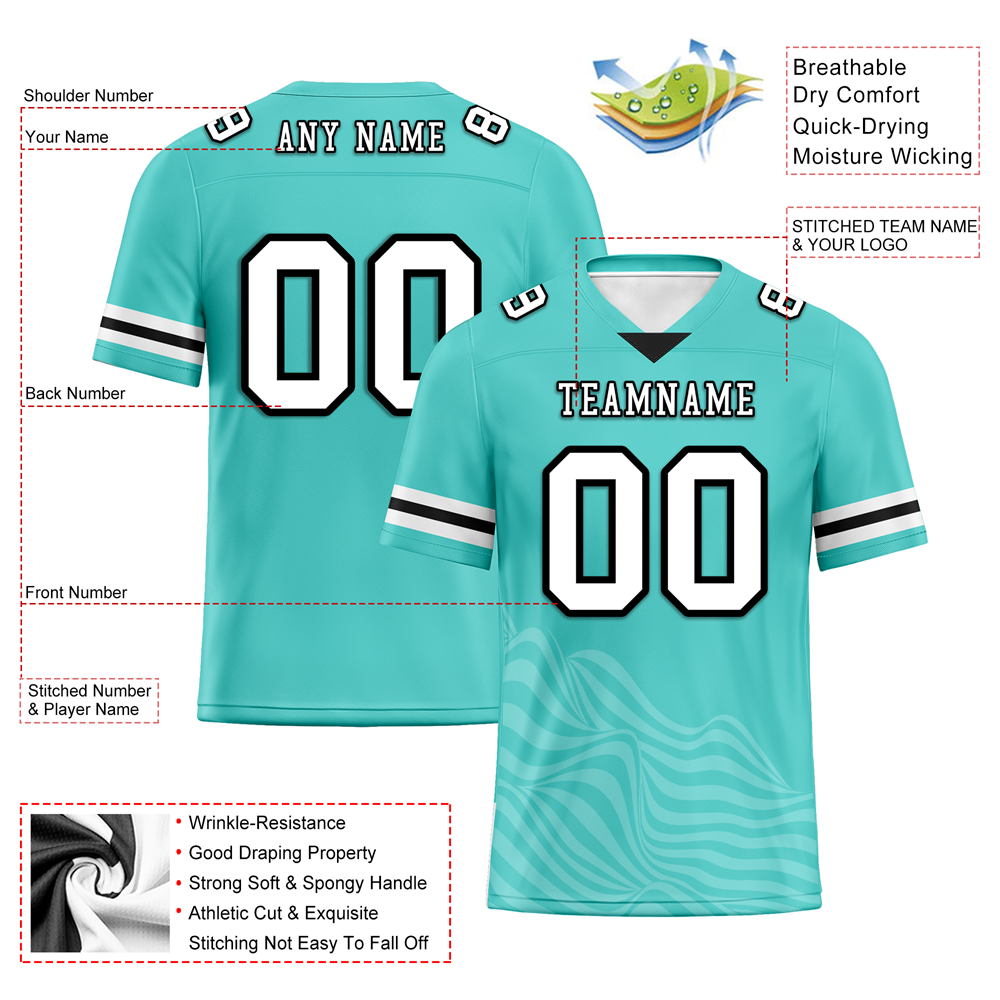 Custom Aqua Sleeve Stripes White Personalized Authentic Football Jersey FBJ02-bc0f0da