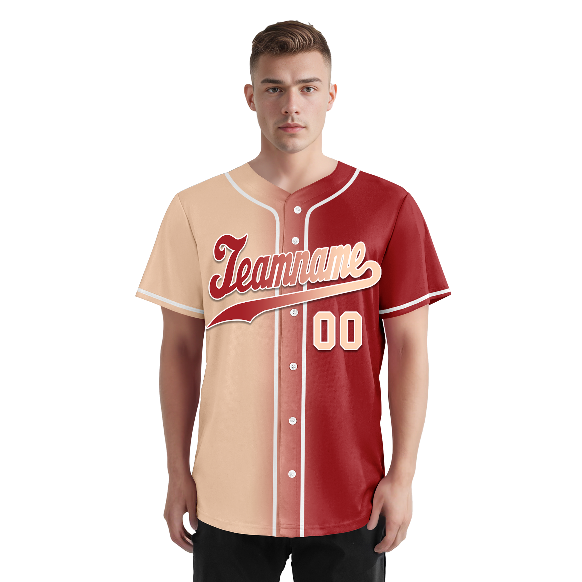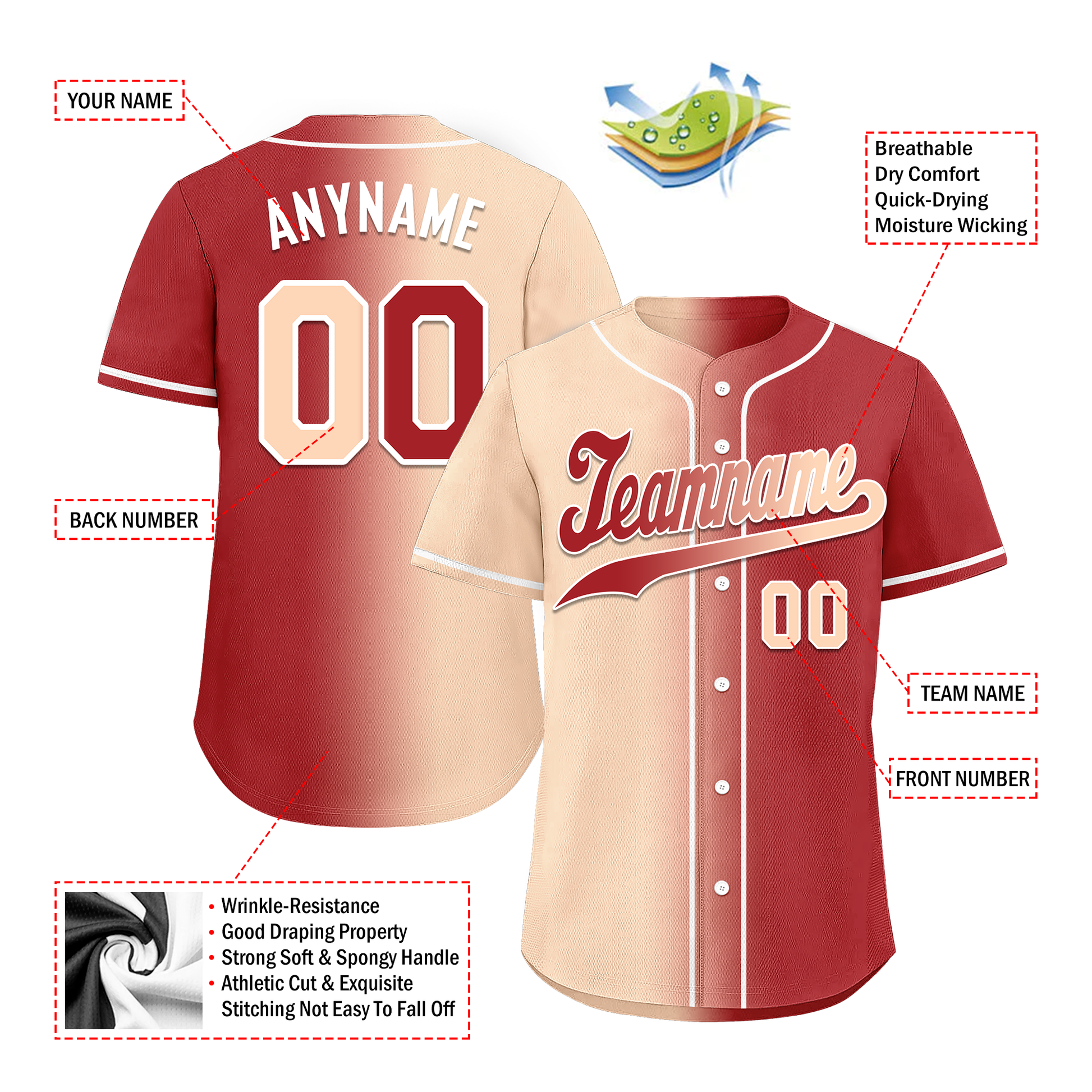 Custom Beige Red Gradient Fashion Personalized Authentic Baseball Jersey BSBJ01-D0a708f