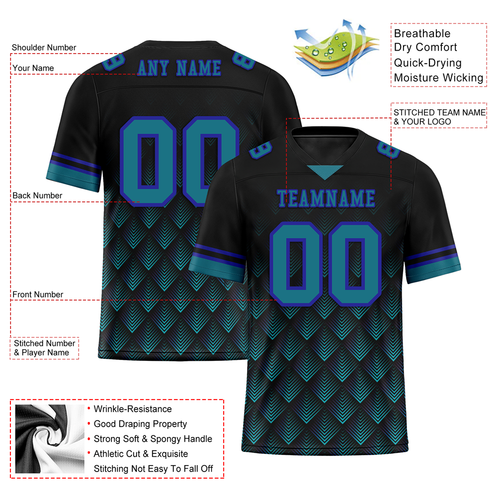 Custom Black 3D Pattern Aqua Personalized Authentic Football Jersey FBJ02-bc0faec