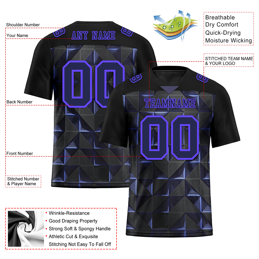 Custom Black 3D Pattern Purple Personalized Authentic Football Jersey FBJ02-bc0faef
