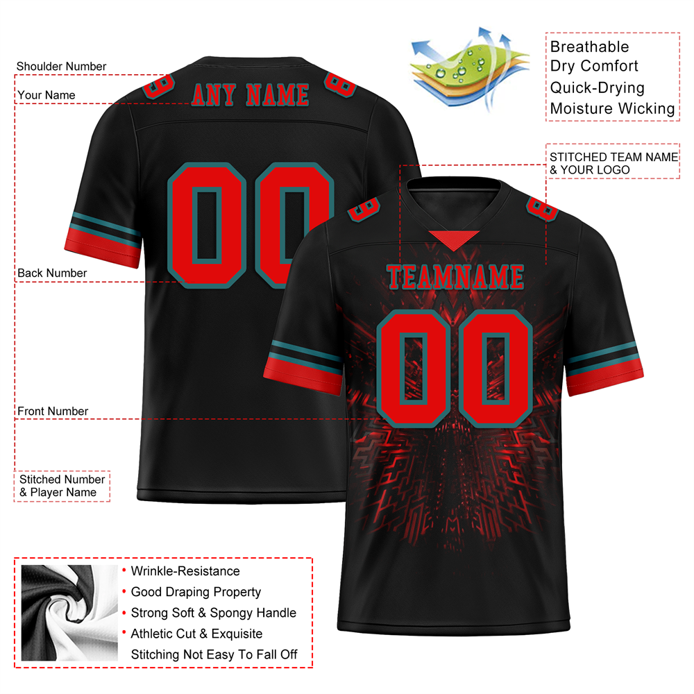 Custom Black 3D Pattern Red Personalized Authentic Football Jersey FBJ02-bc0faf0