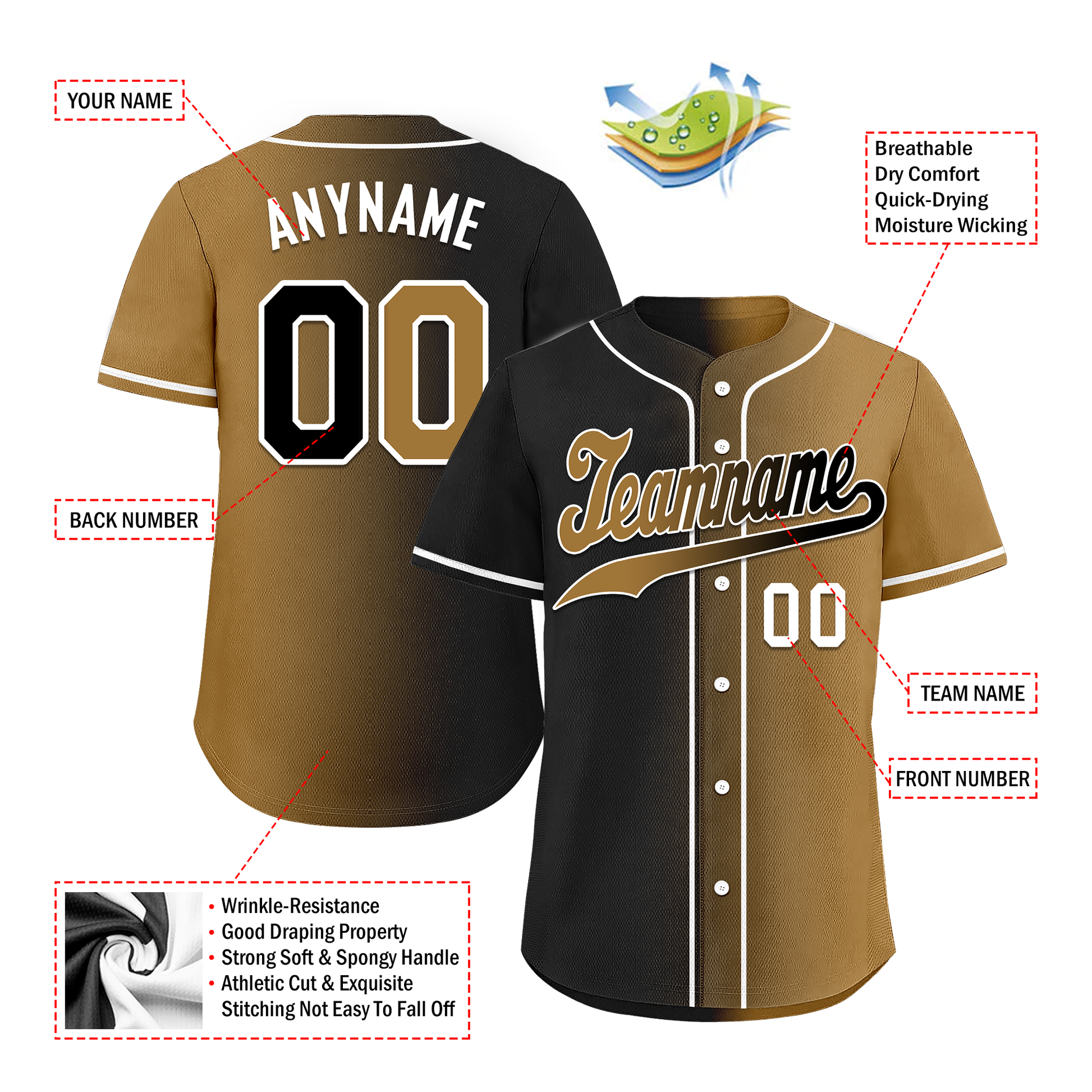 Custom Black Gold Gradient Fashion Personalized Authentic Baseball Jersey BSBJ01-D0a7a0d