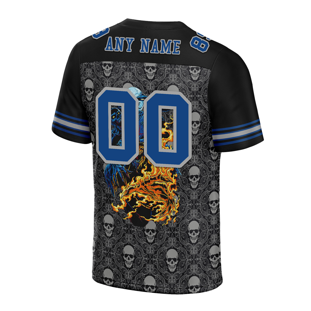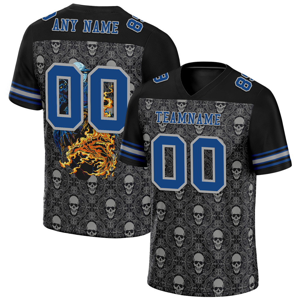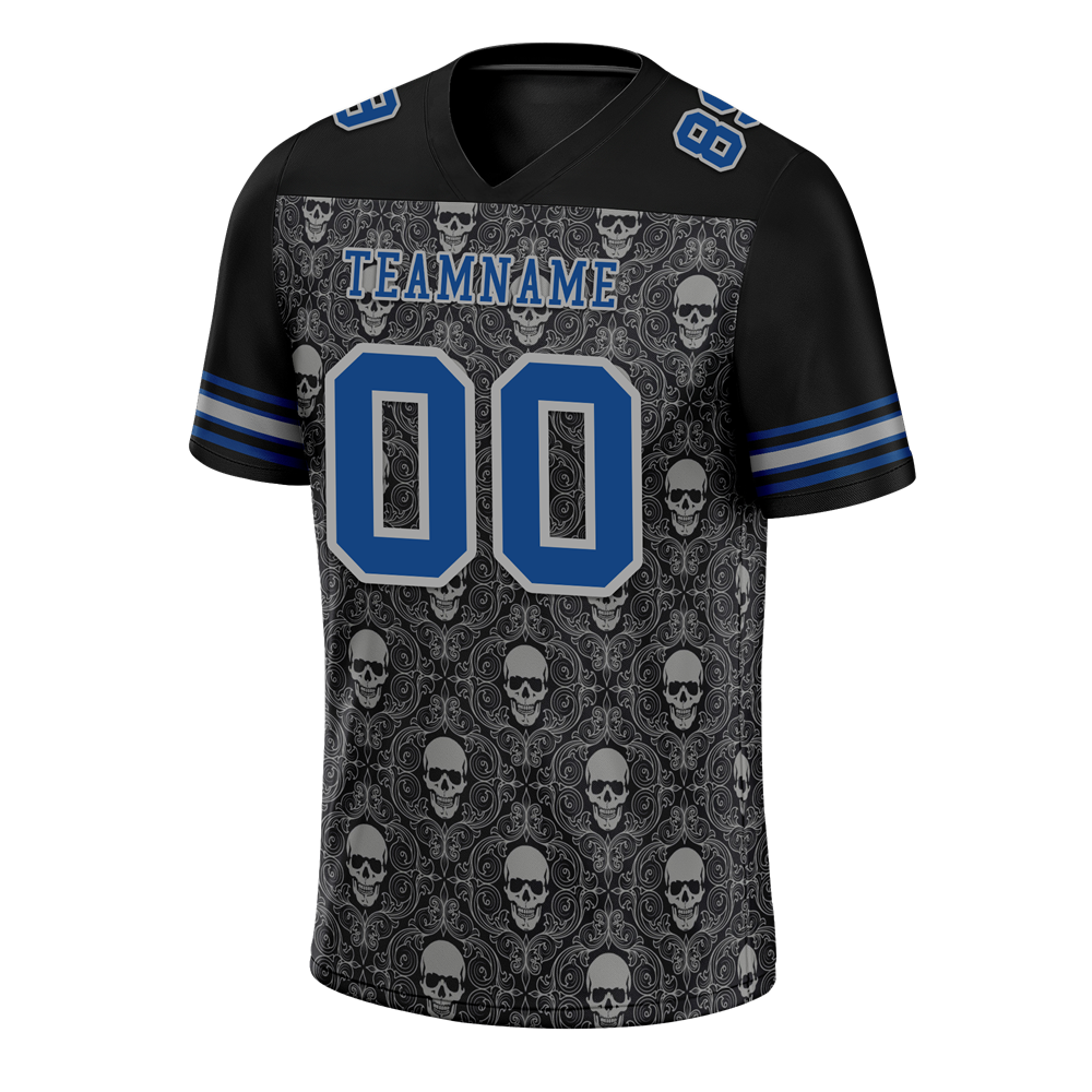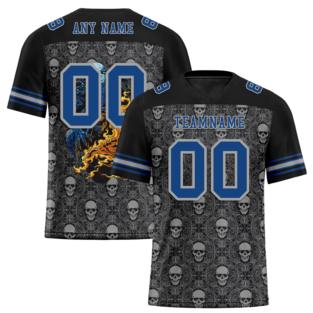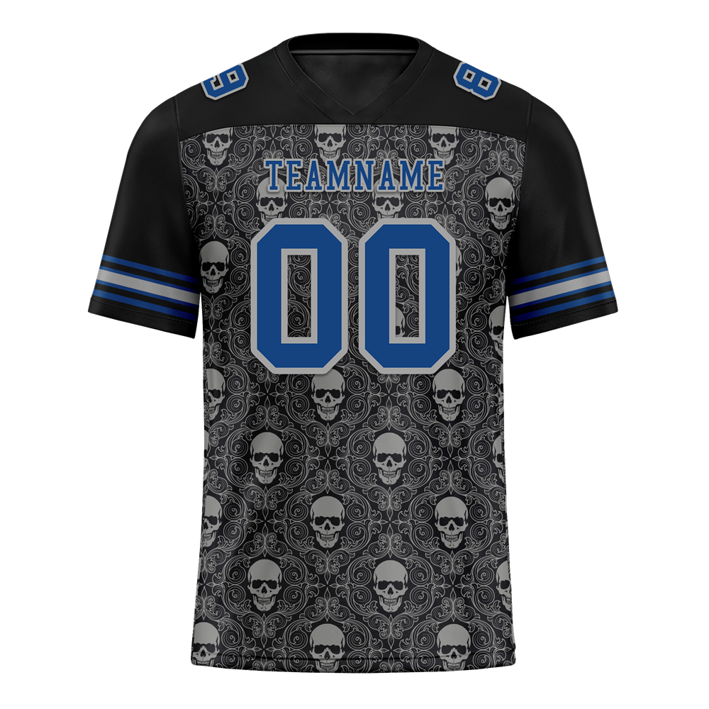 Custom Black Grey Skull Fashion Blue Personalized Authentic Football Jersey FBJ02-bc0fbaf
