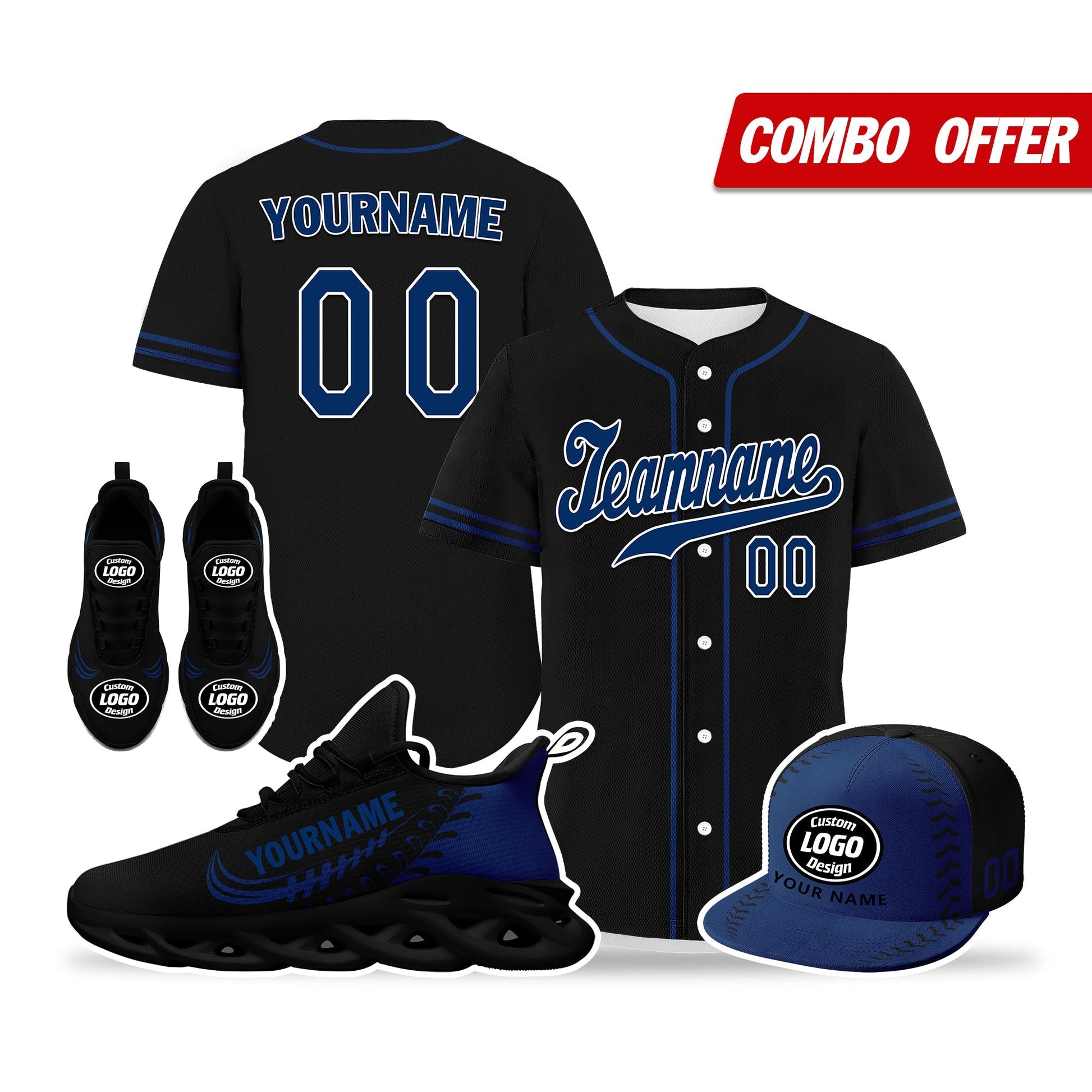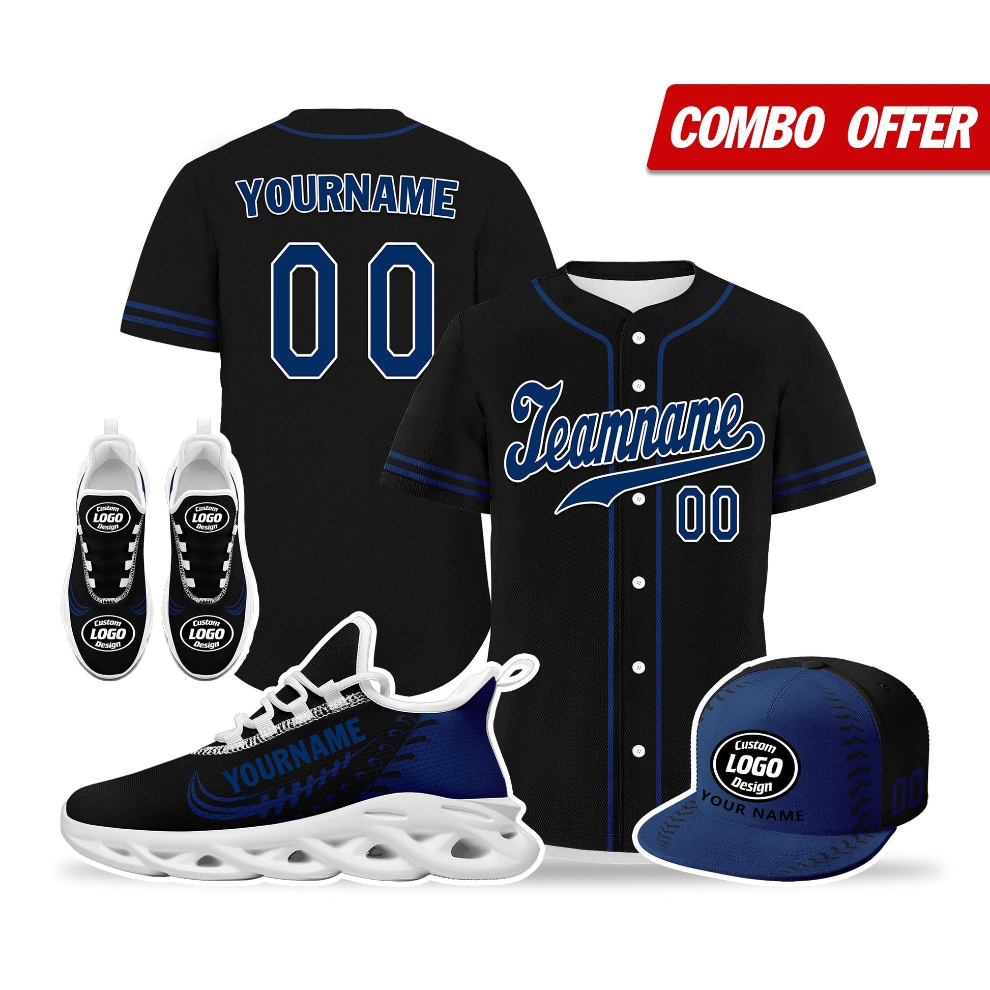 Elevate your fashion game with this exclusive combo deal featuring a custom hat, a pair of custom sneakers, and a custom jersey!