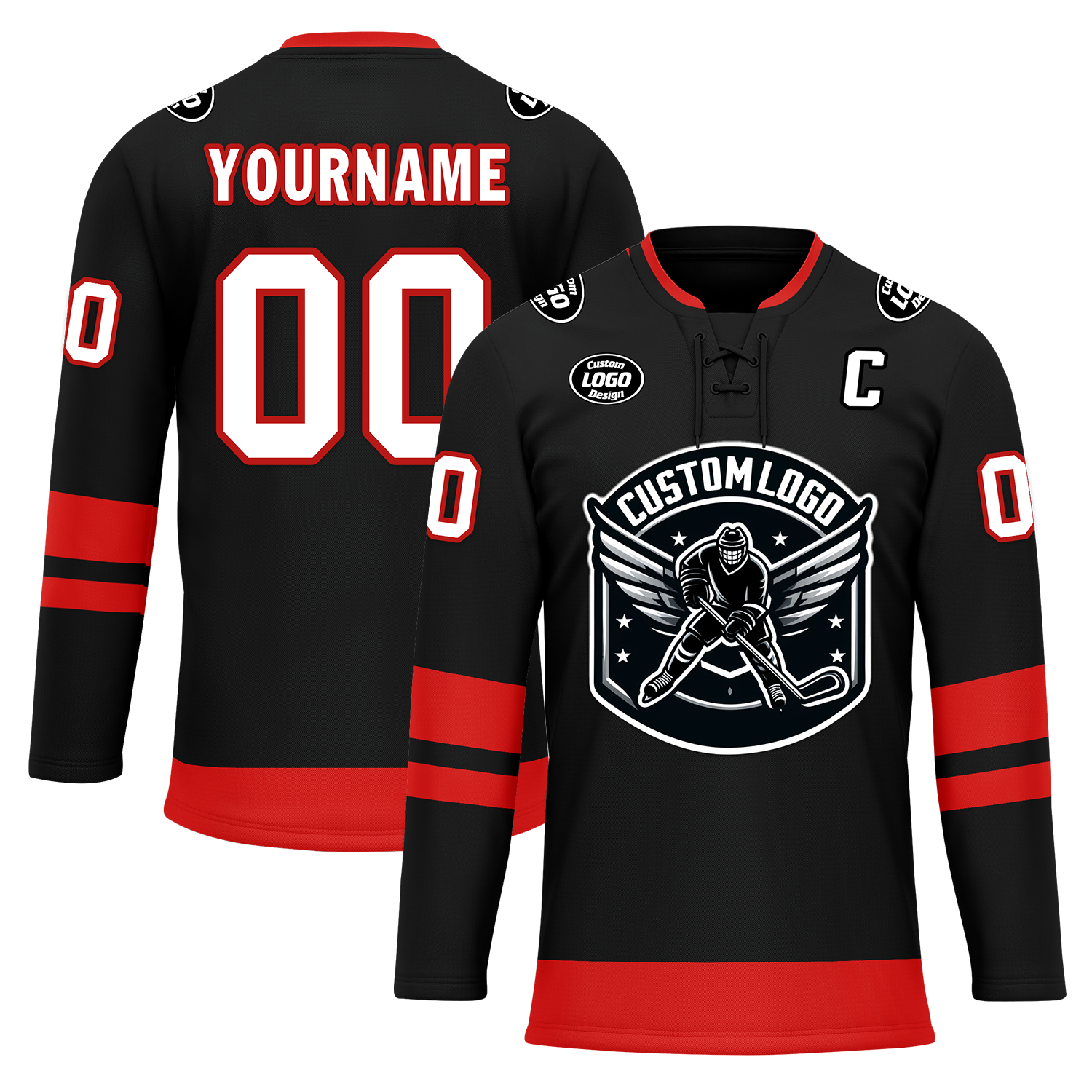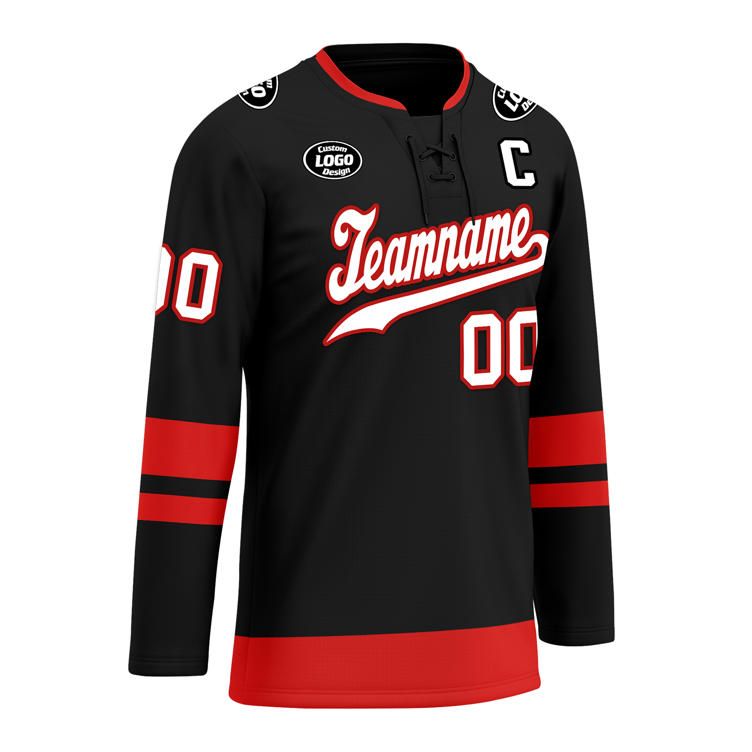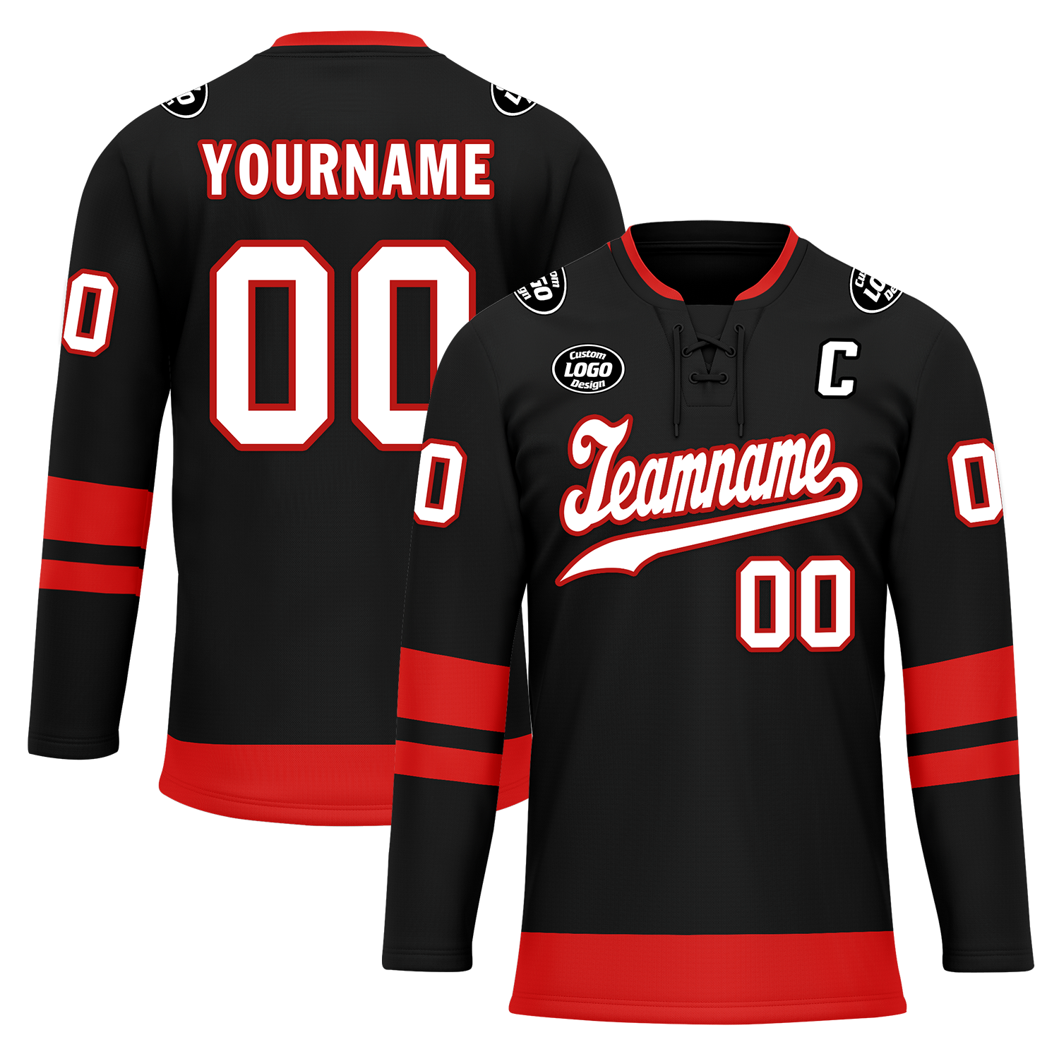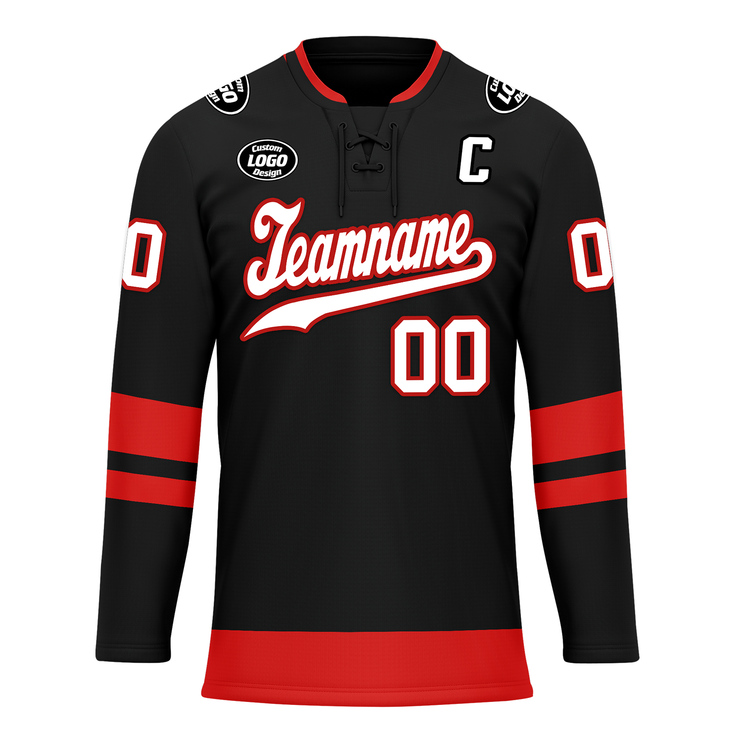 Custom Black Red Personalized Hockey Jersey HCKJ01-D0a700b