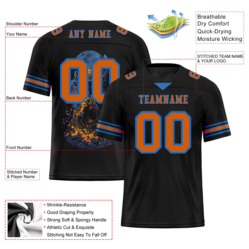 Custom Black Skull Fashion Brown Personalized Authentic Football Jersey FBJ02-bc0fbab