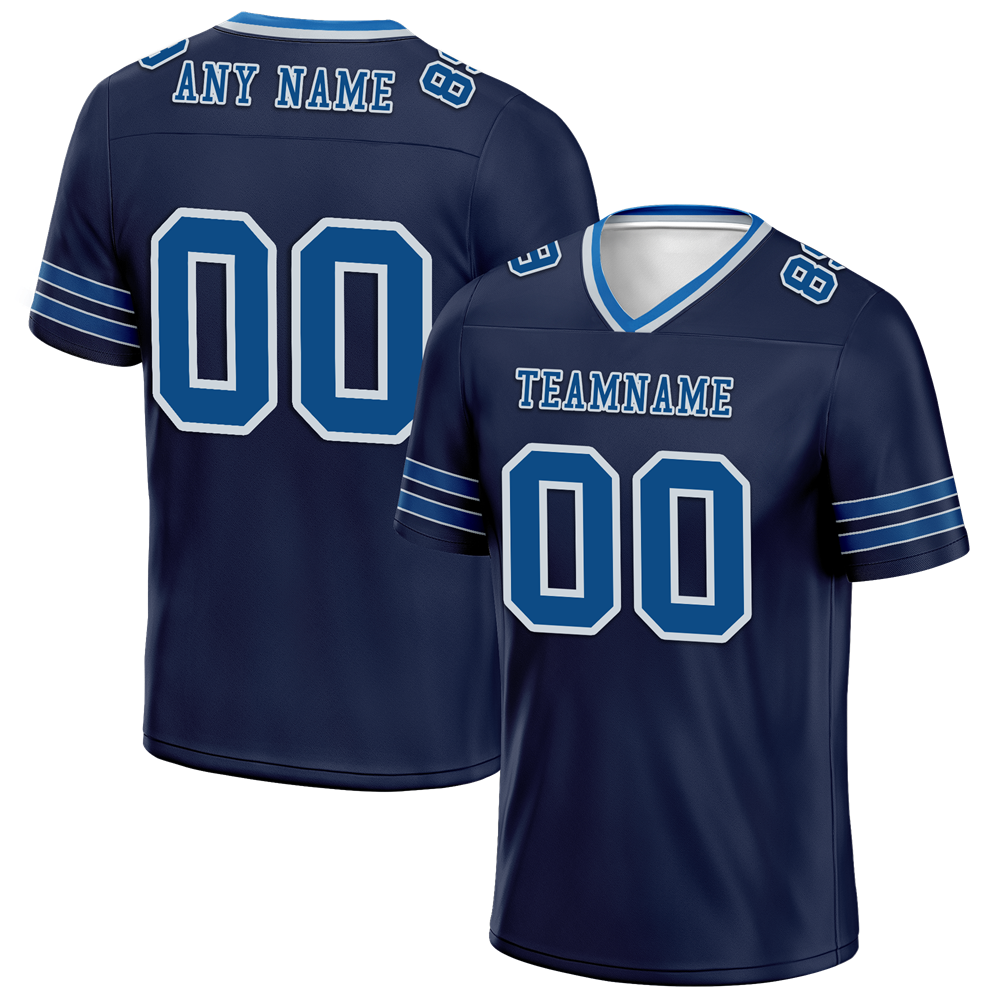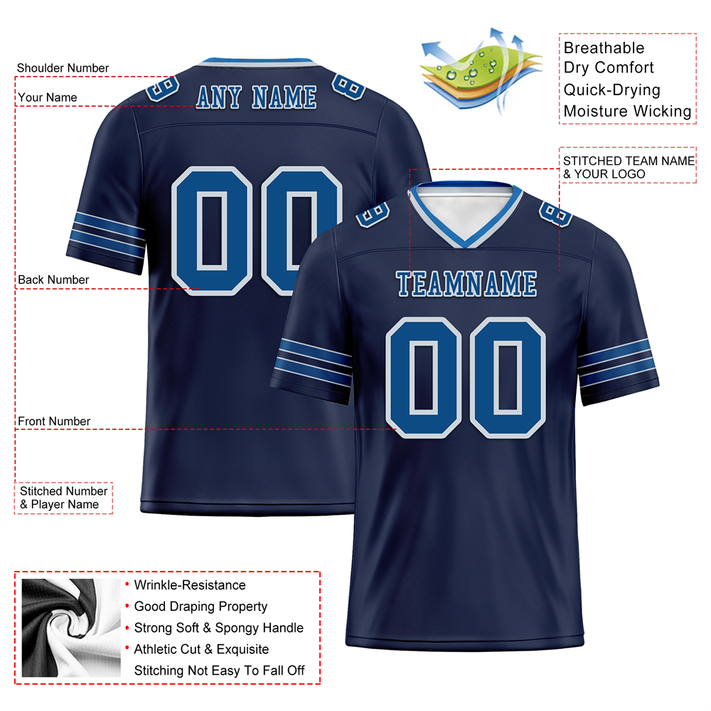 Custom Black Sleeve Stripes Blue Personalized Authentic Football Jersey FBJ02-bc0f08d