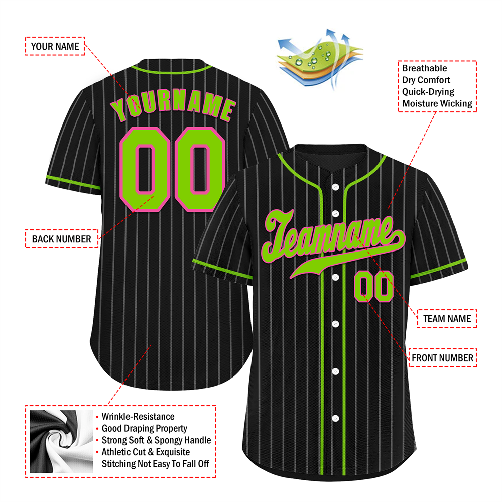 Custom Black Stripe Fashion Green Authentic Baseball Jersey