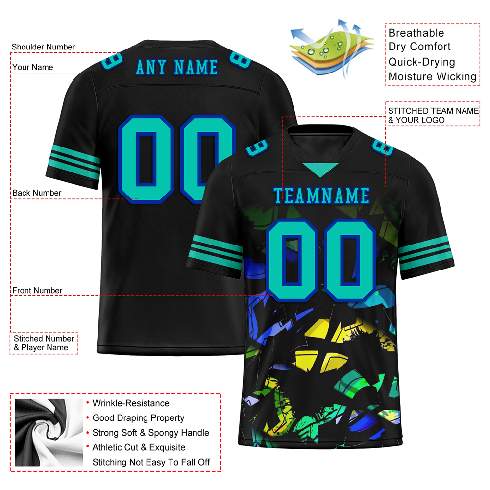 Custom Black Tie Dye Aqua Personalized Authentic Football Jersey FBJ02-bc0fa7f