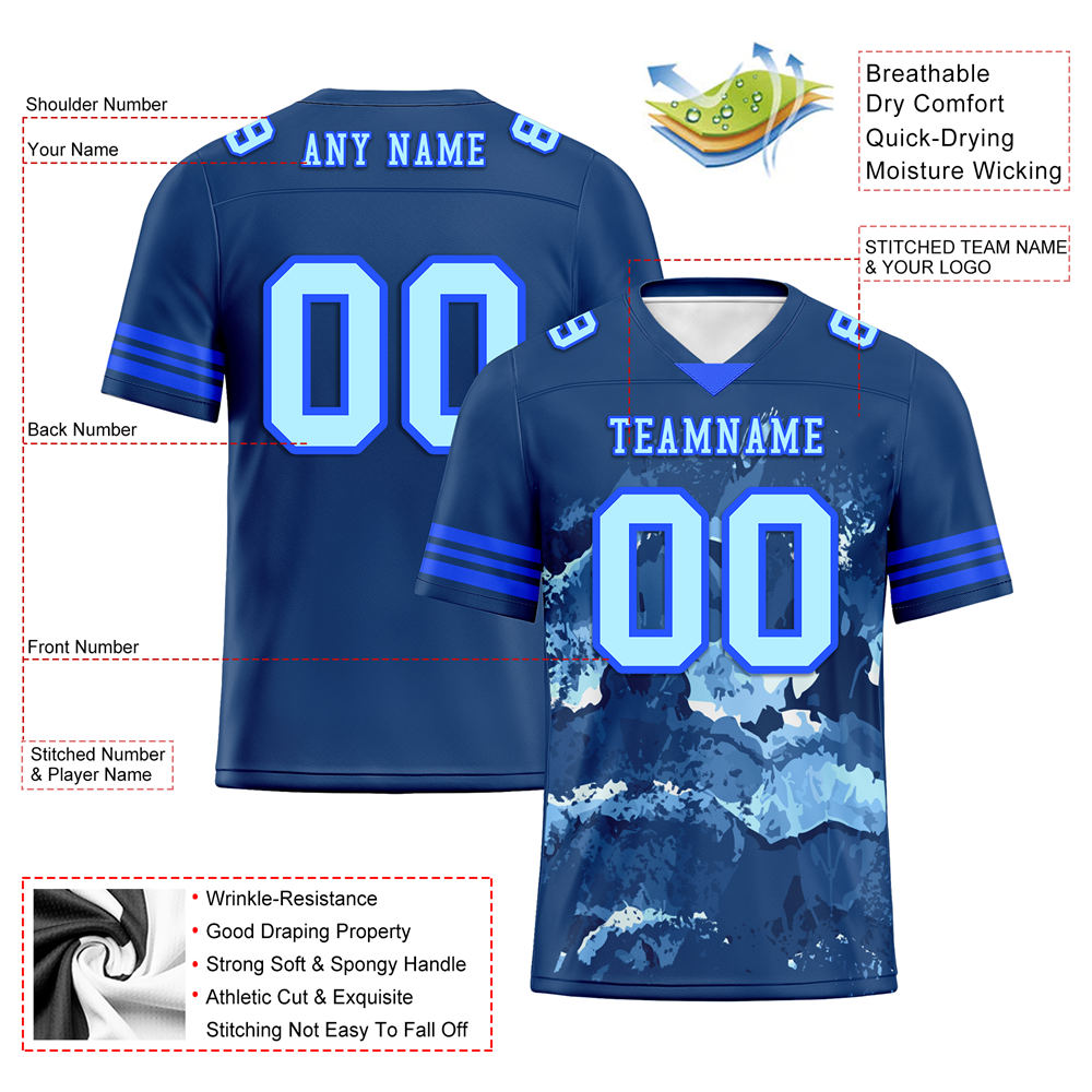 Custom Black Tie Dye Aqua Personalized Authentic Football Jersey FBJ02-bc0fa8d