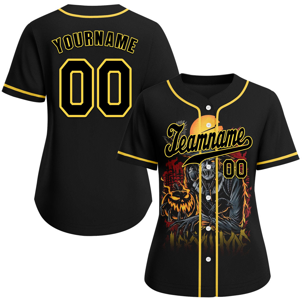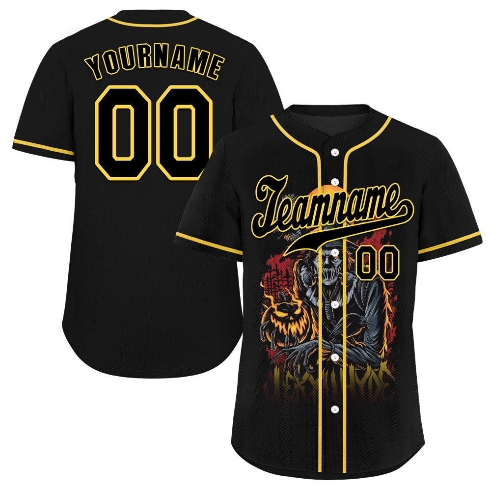 Custom Black Yellow Skull Fashion Black Authentic Baseball Jersey BSBJ0a-bc0fb98