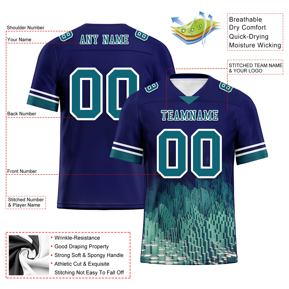 Custom Blue 3D Pattern Aqua Personalized Authentic Football Jersey FBJ02-bc0fae9