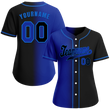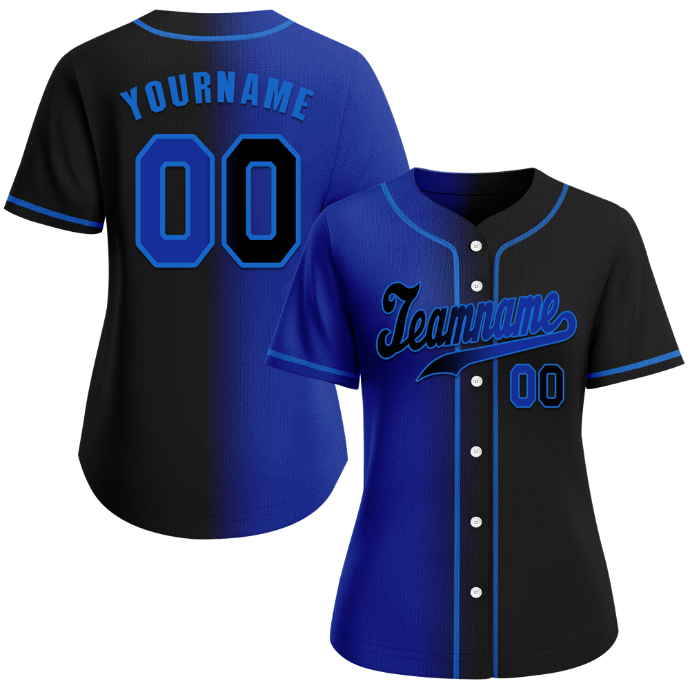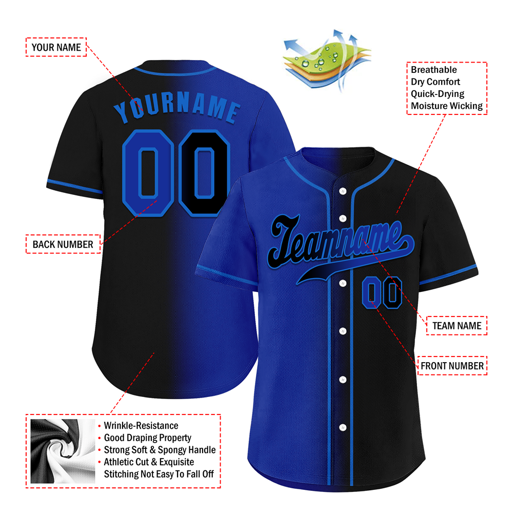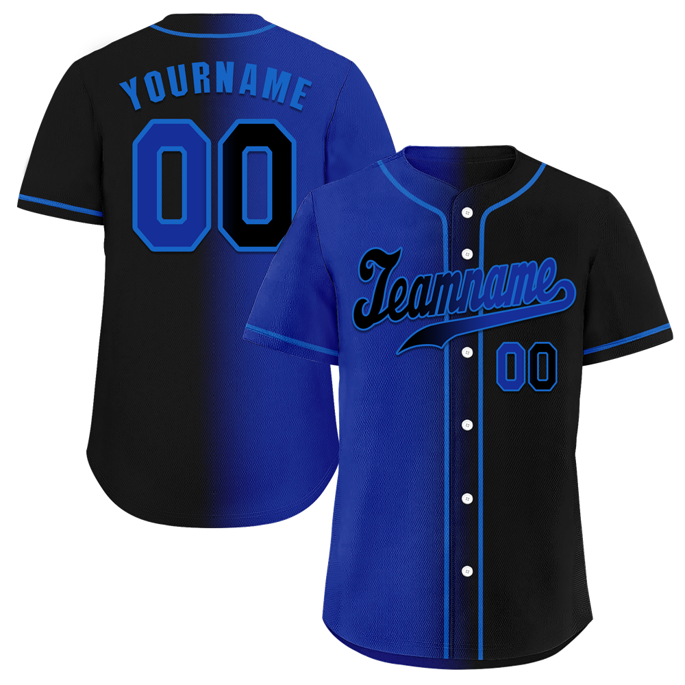 Custom Blue Black Gradient Fashion Black Authentic Baseball Jersey