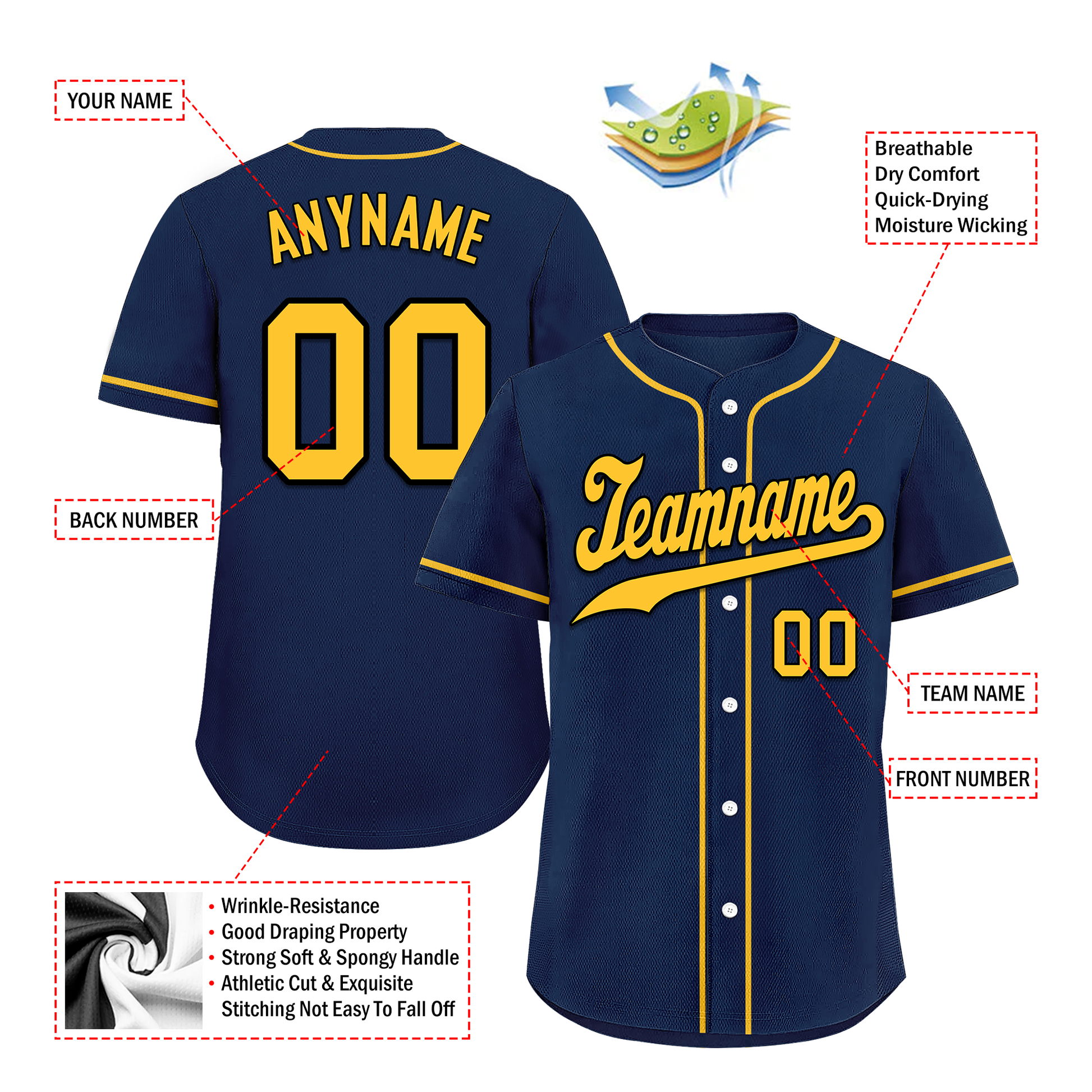Each CCJ tailored baseball jersey is meticulously personalized with the following features: