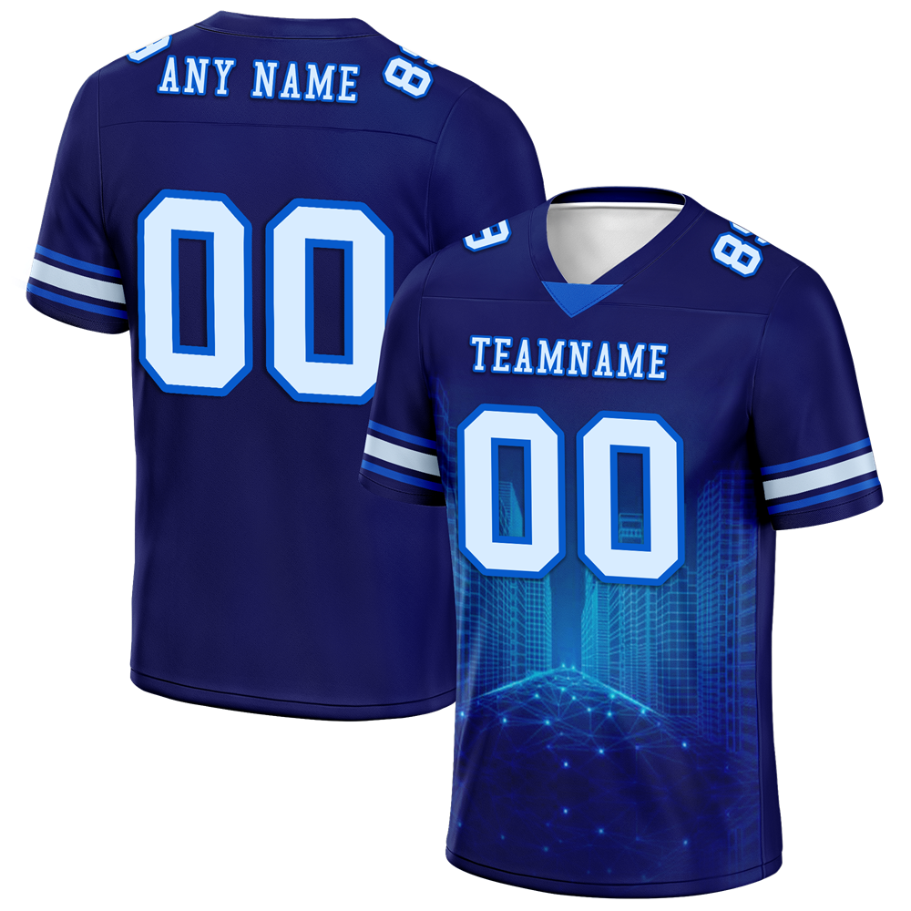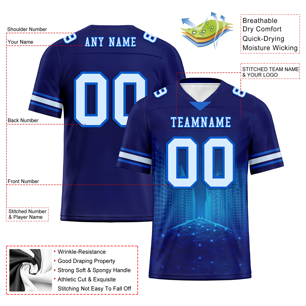 Custom Blue Graffiti Pattern White Personalized Authentic Football Jersey FBJ02-bc0fadb