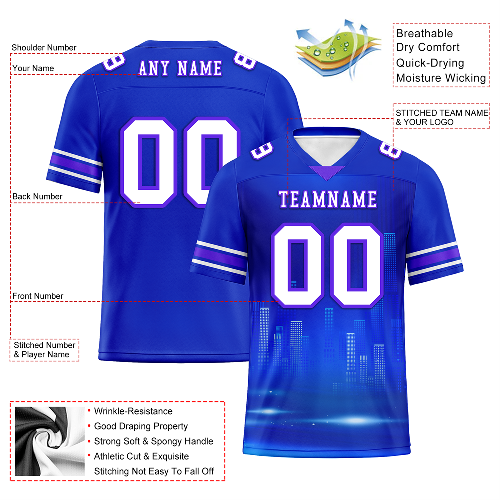 Custom Blue Graffiti Pattern White Personalized Authentic Football Jersey FBJ02-bc0fade