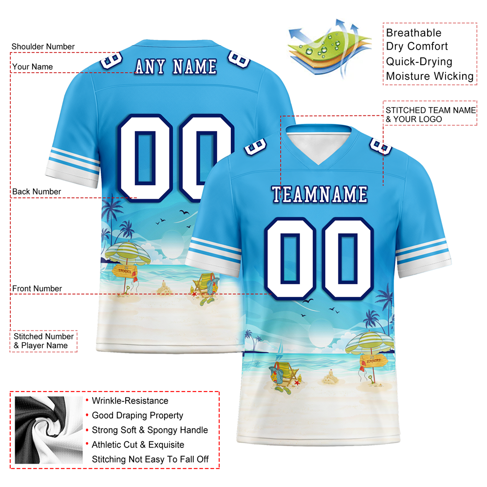 Custom Blue Hawaii White Personalized Authentic Football Jersey FBJ02-bc0fa9c