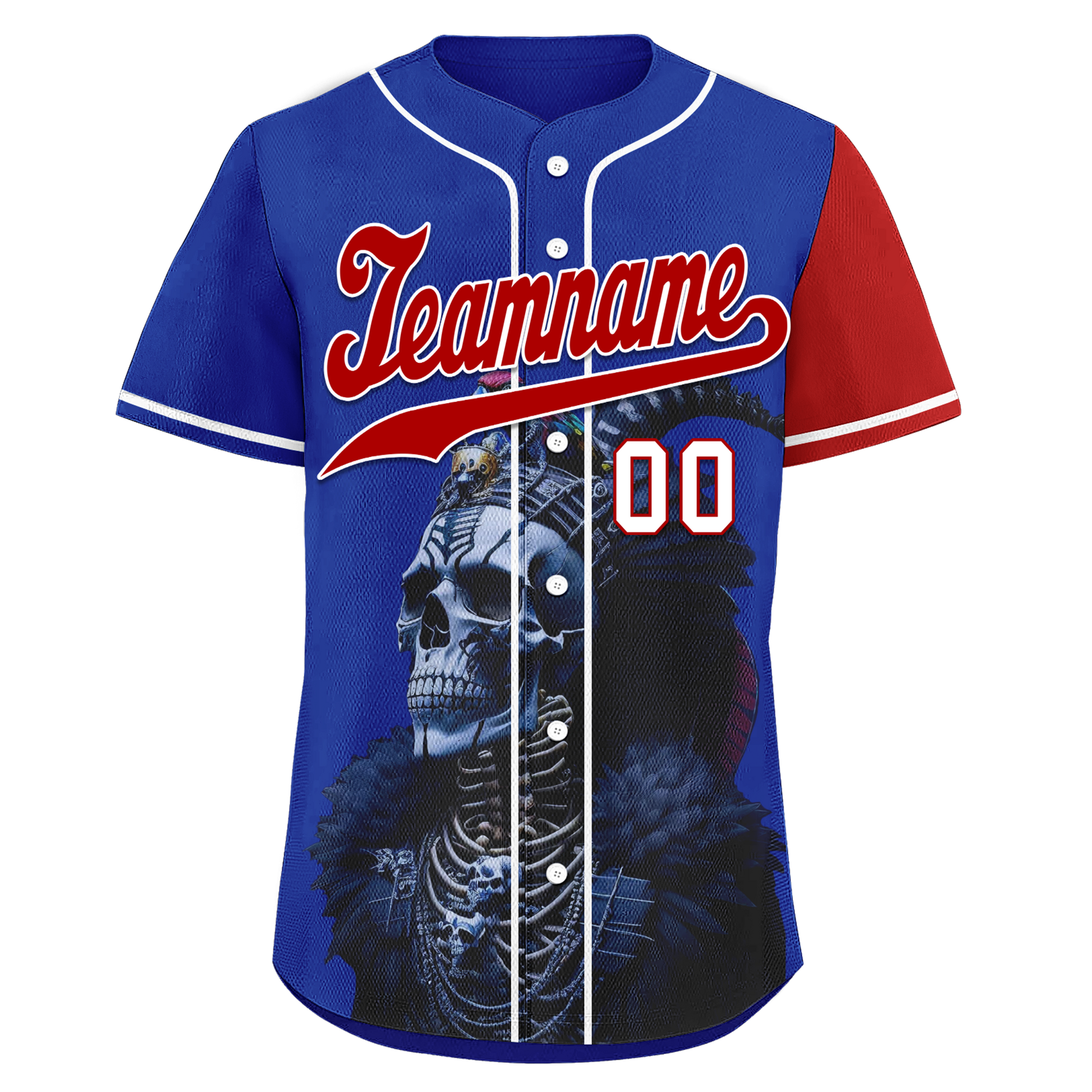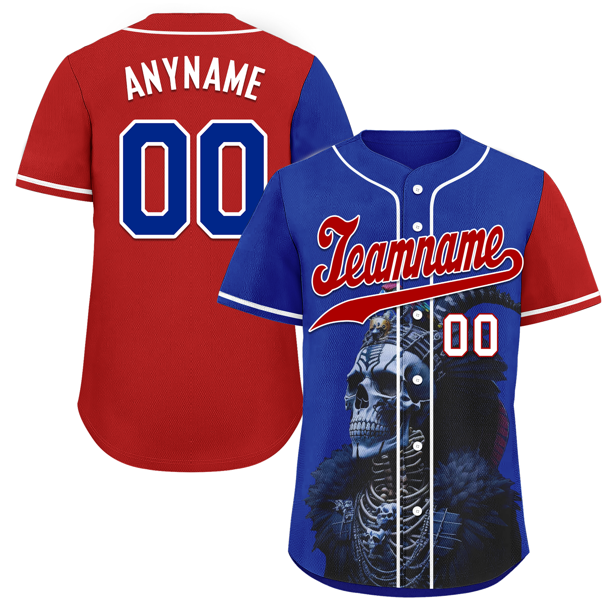 Custom Blue Red Skull Fashion Personalized Authentic Baseball Jersey BSBJ01-D017146