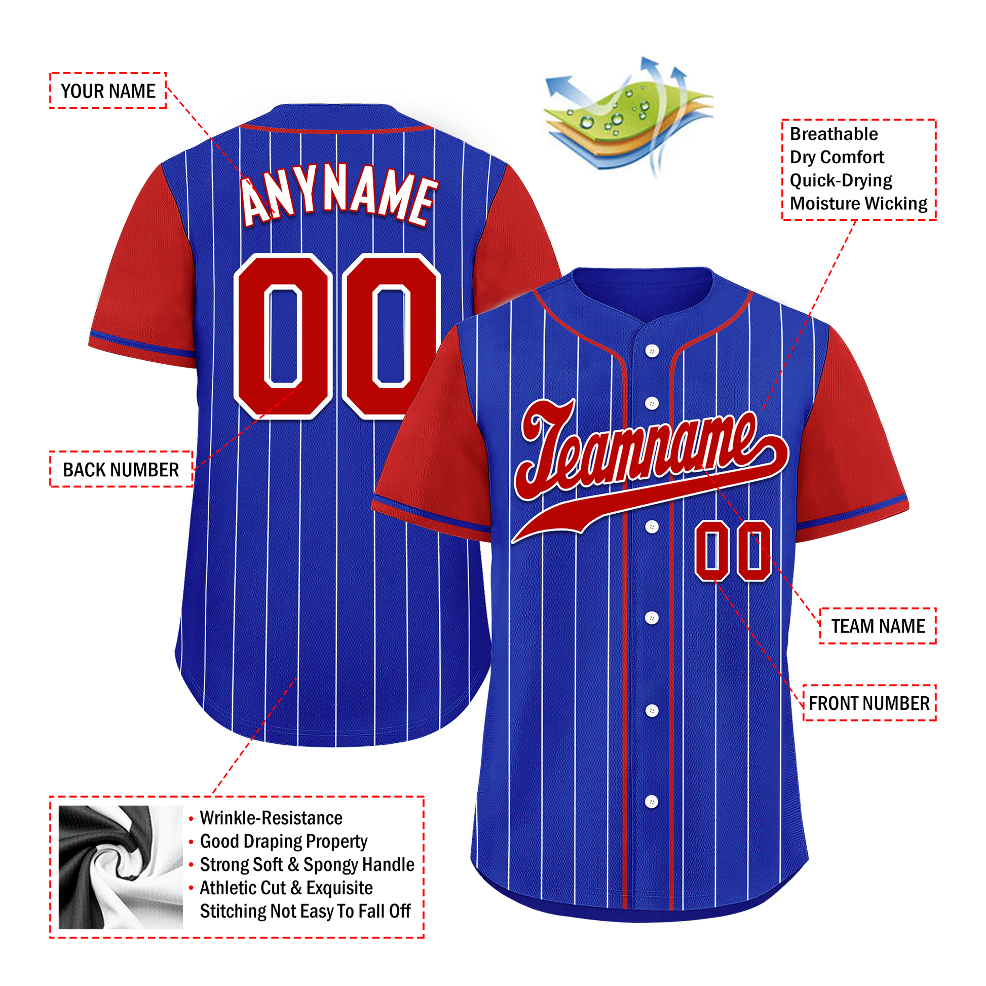 Each CCJ tailored baseball jersey is meticulously personalized with the following features: