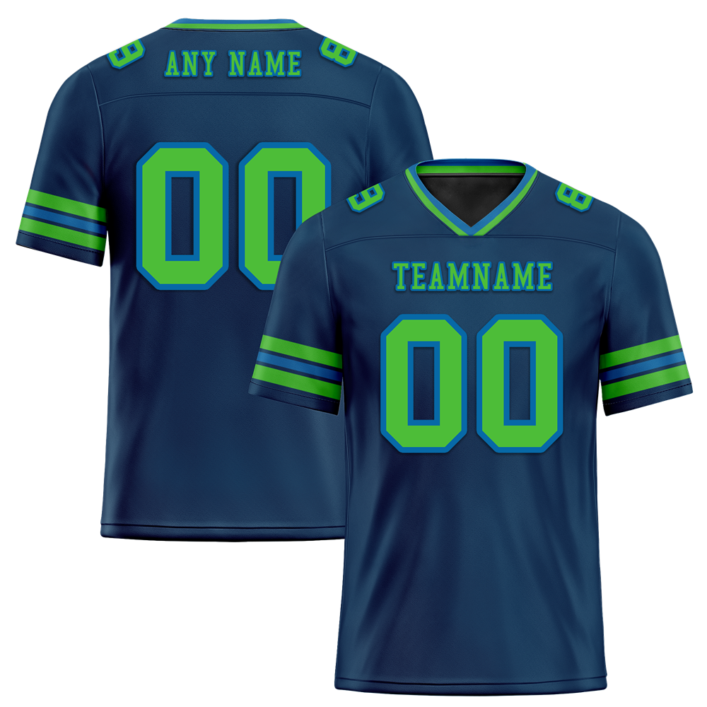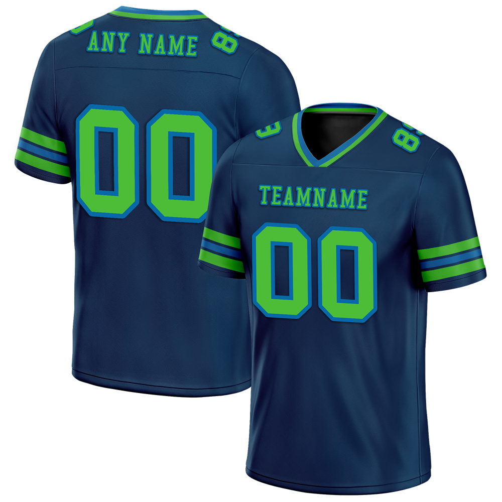 Custom Blue Sleeve Stripes Green Personalized Authentic Football Jersey FBJ02-bc0f07b