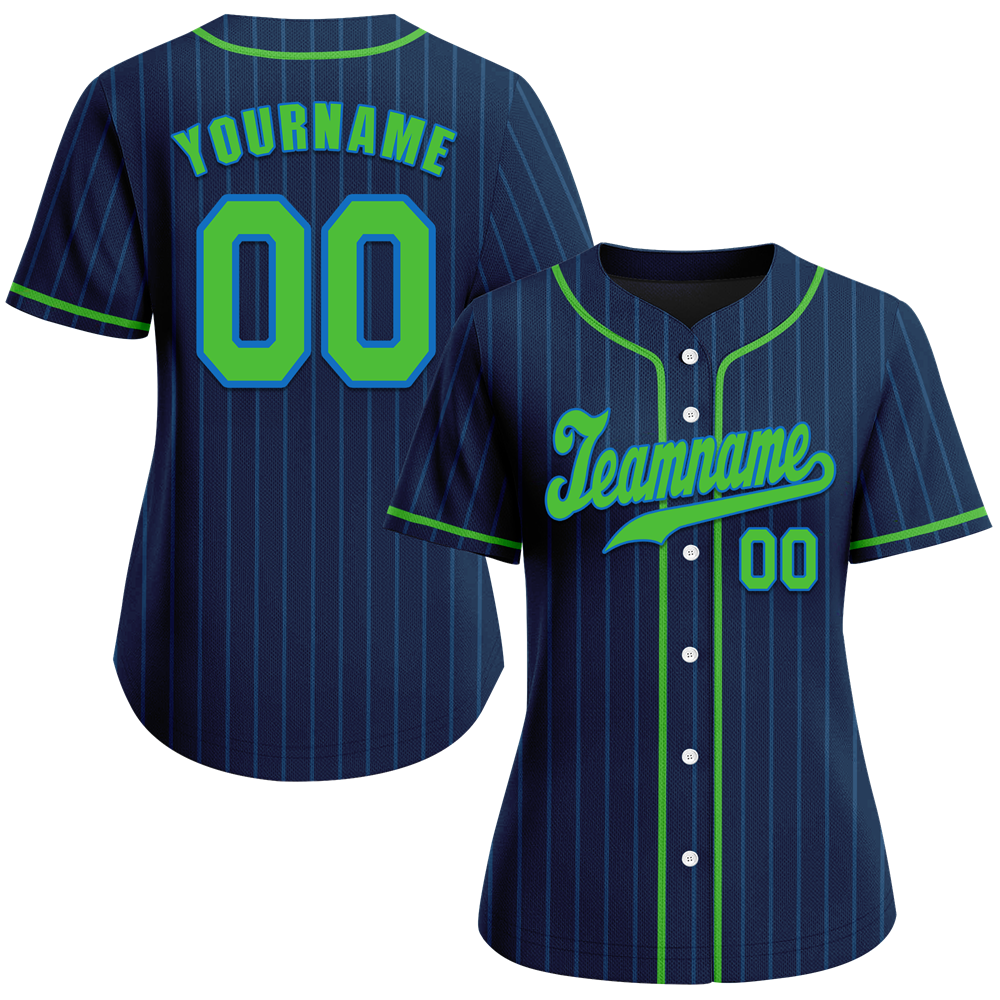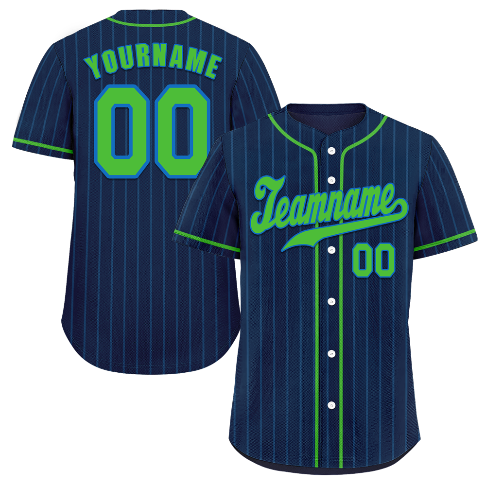 Custom Blue Stripe Fashion Green Authentic Baseball Jersey