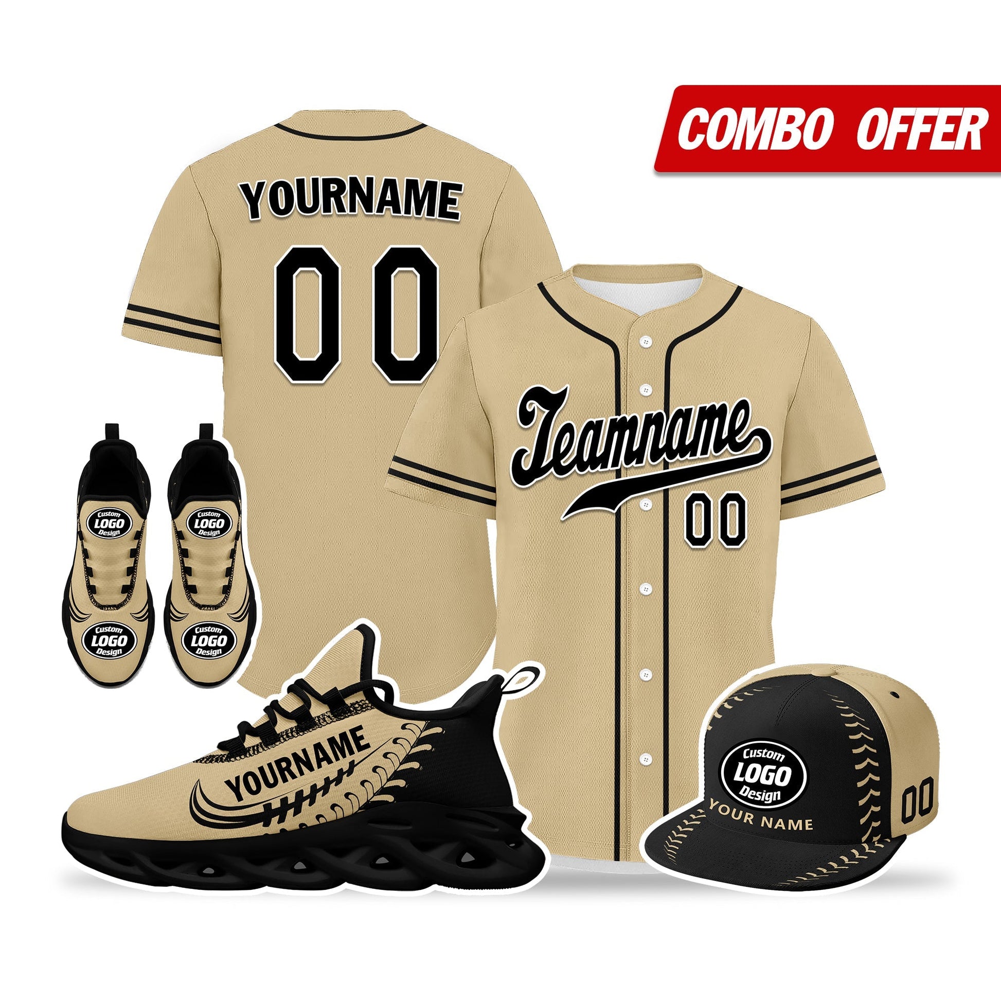 Elevate your fashion game with this exclusive combo deal featuring a custom hat, a pair of custom sneakers, and a custom jersey!