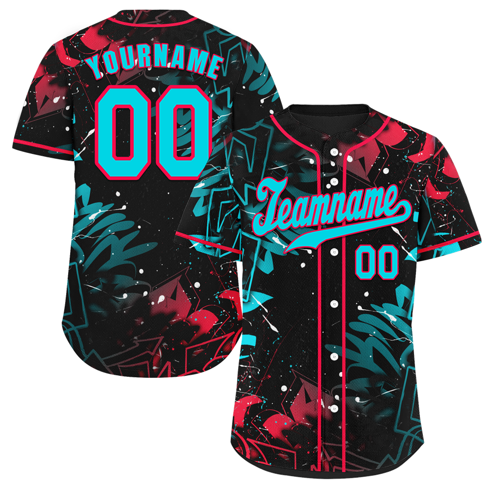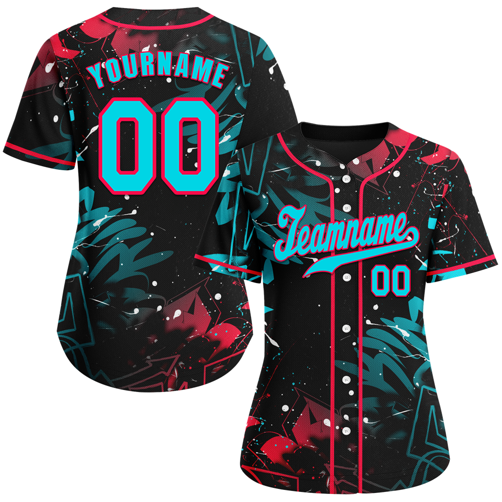 Custom Colorful Graffiti Pattern Aqua Authentic Baseball Jersey