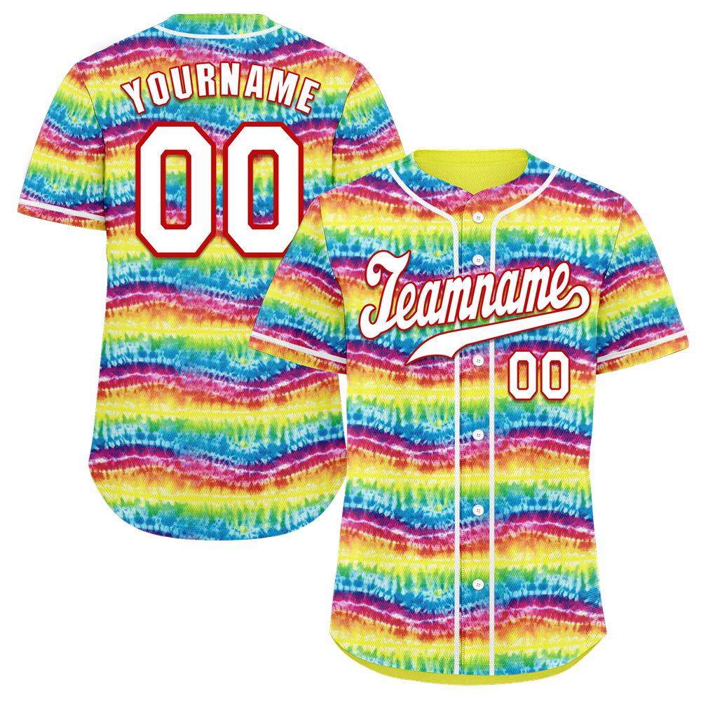 Custom Colorful Yellow Tie Dye White Authentic Baseball Jersey BSBJ0a-bc0fbec