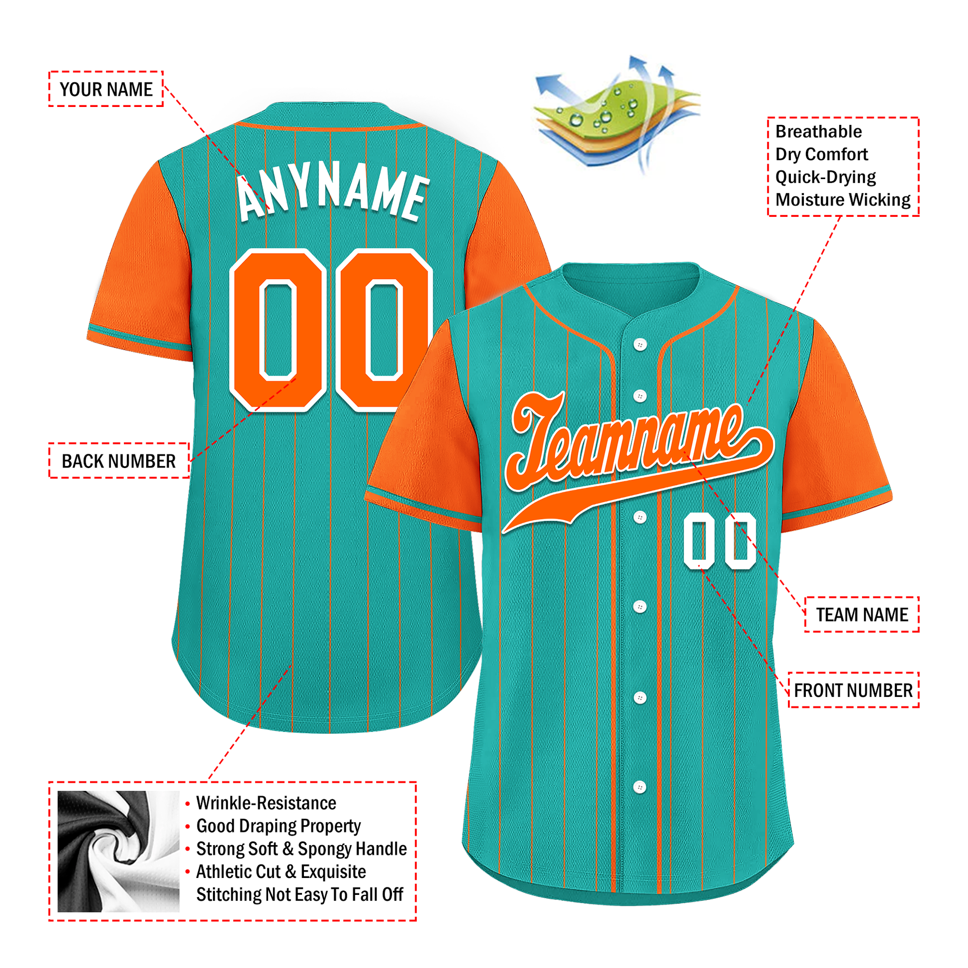 Custom Cyan Orange Stripe Fashion Personalized Authentic Baseball Jersey BSBJ01-D017233