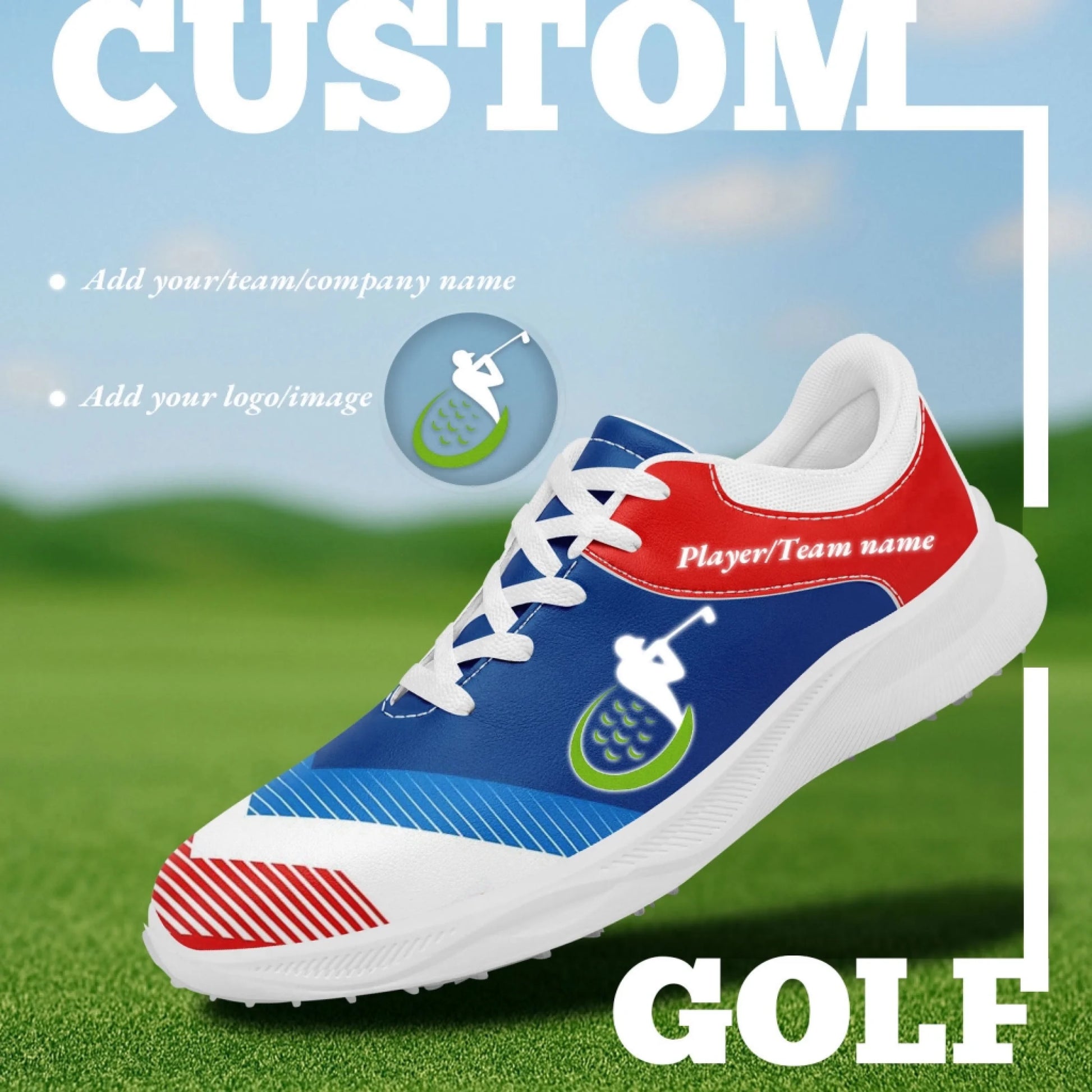 Made with high-quality breathable materials and a flexible sole, these sneakers ensure stability and support during every swing. The customizable design allows you to add logos, team names, or personal artwork, making them ideal for golf clubs, tournaments, or promotional events.