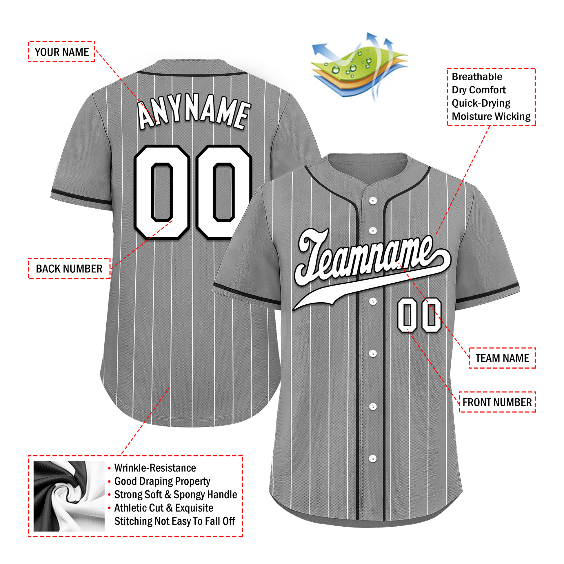 Each CCJ tailored baseball jersey is meticulously personalized with the following features: