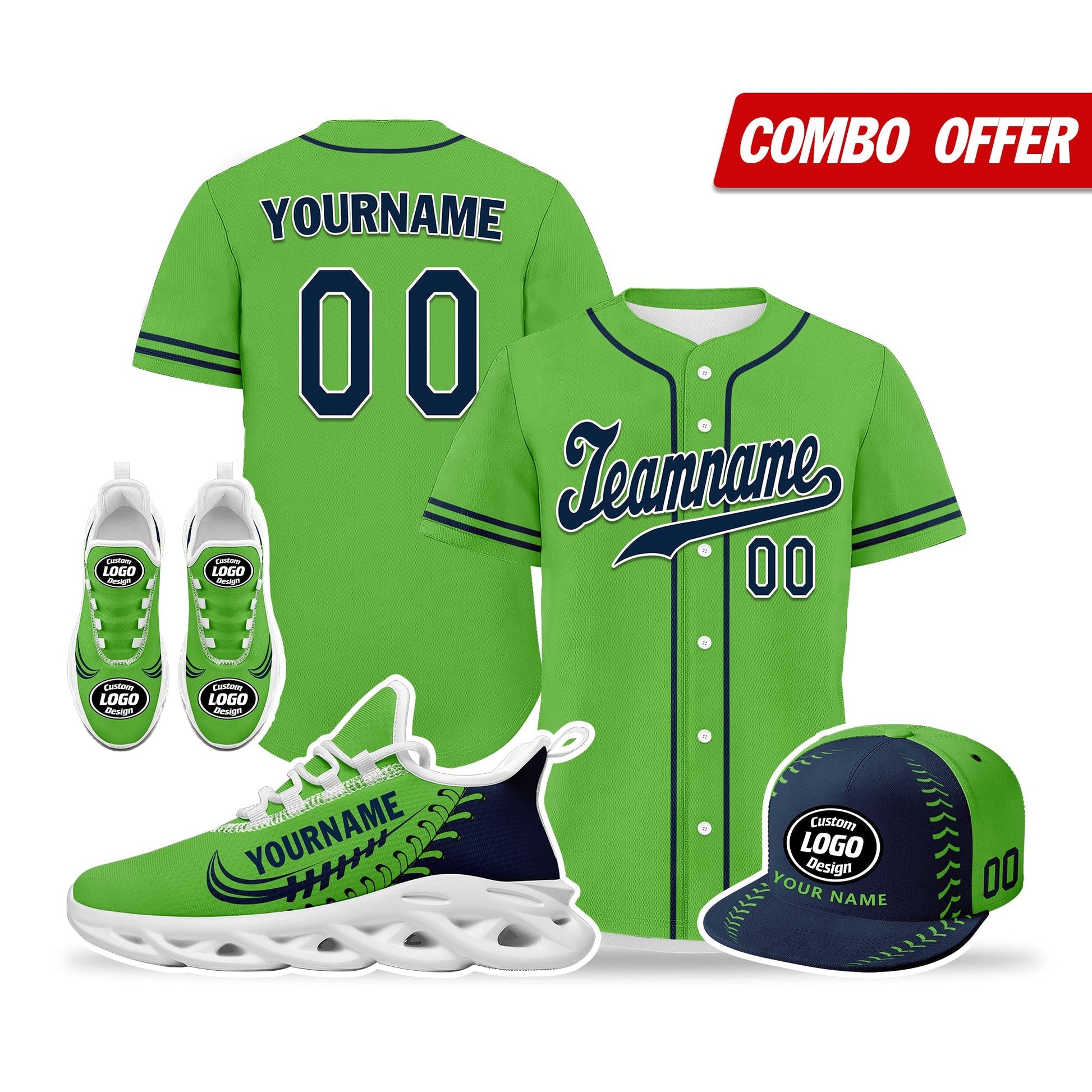 Elevate your fashion game with this exclusive combo deal featuring a custom hat, a pair of custom sneakers, and a custom jersey!