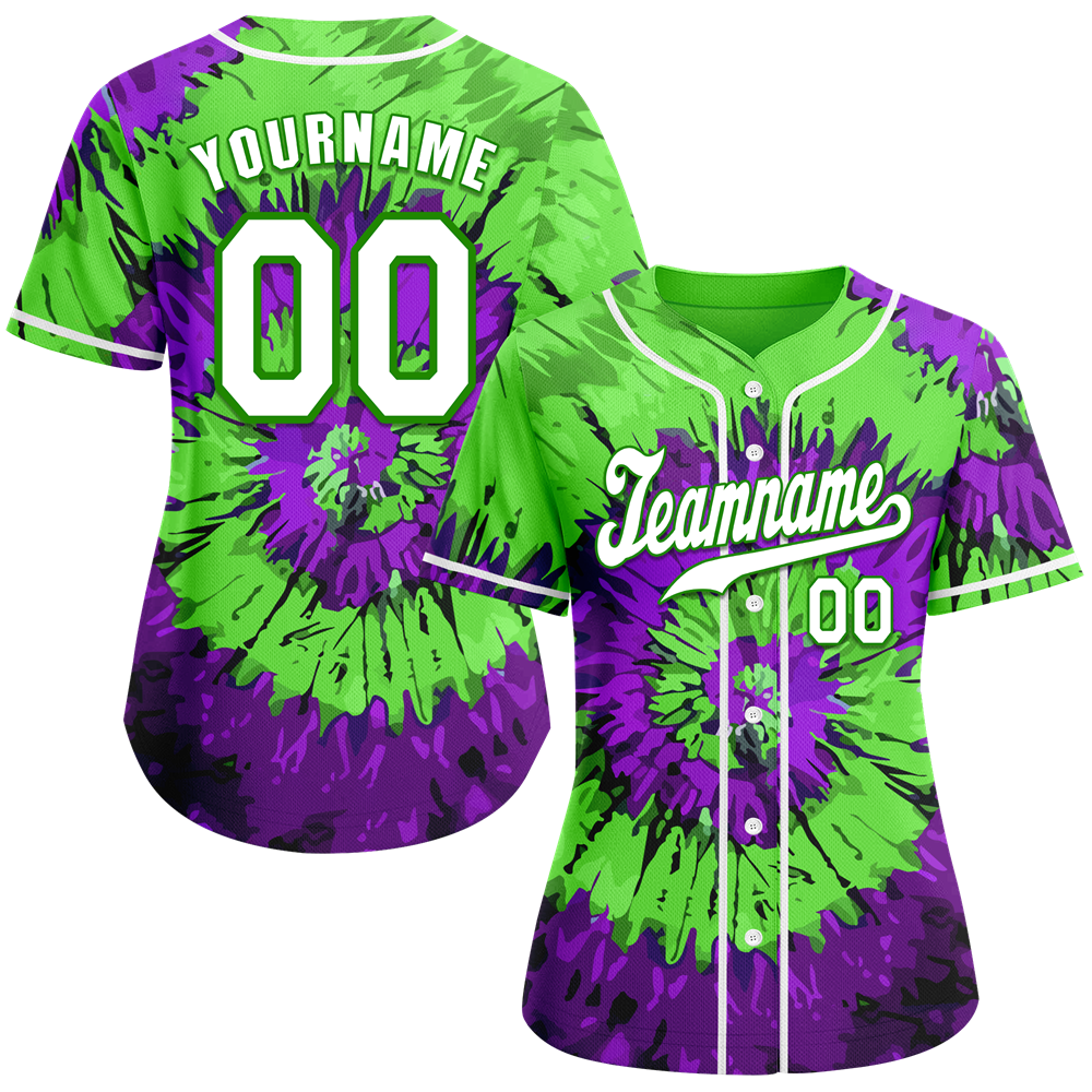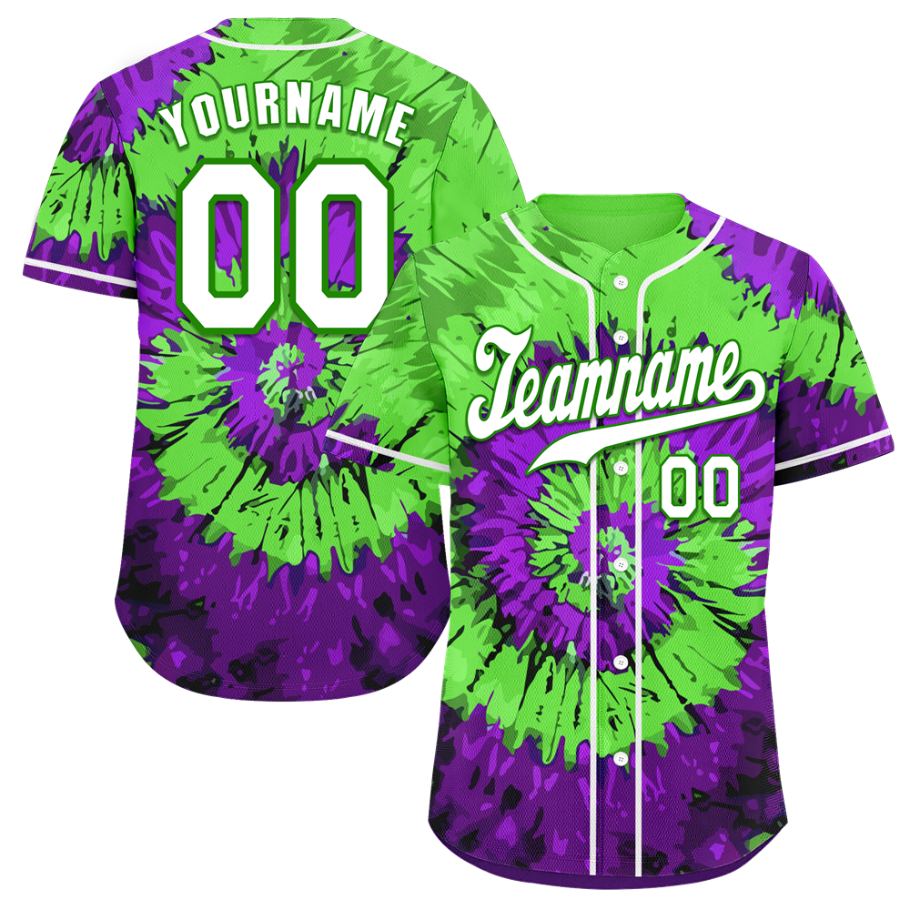 Custom Green Purple Tie Dye White Authentic Baseball Jersey BSBJ0a-bc0fbfe