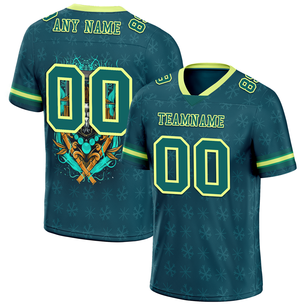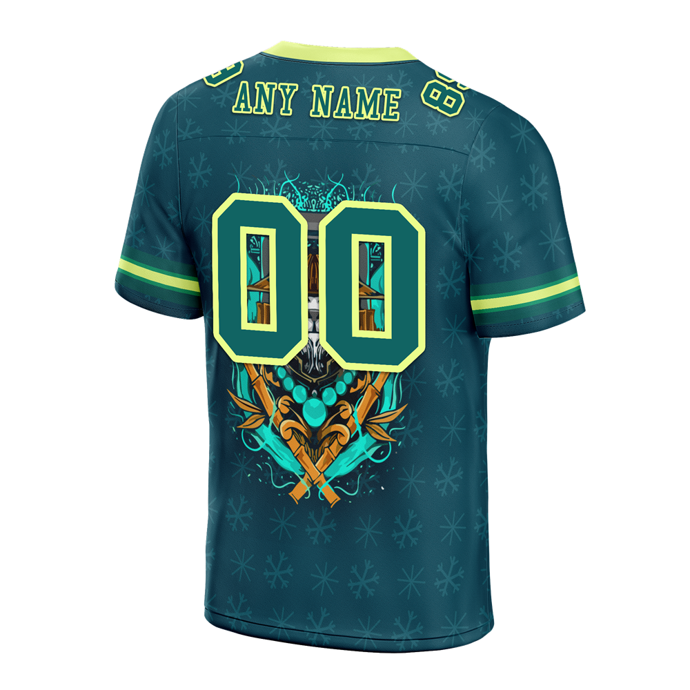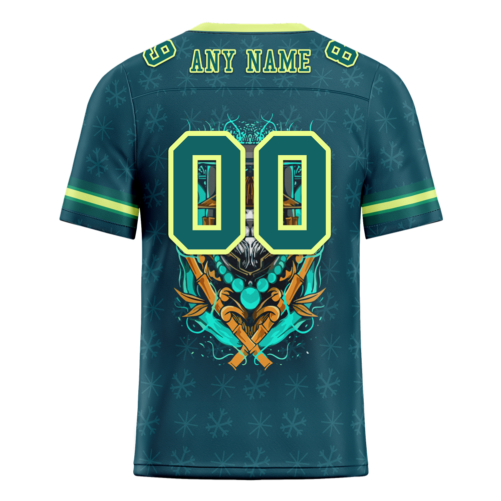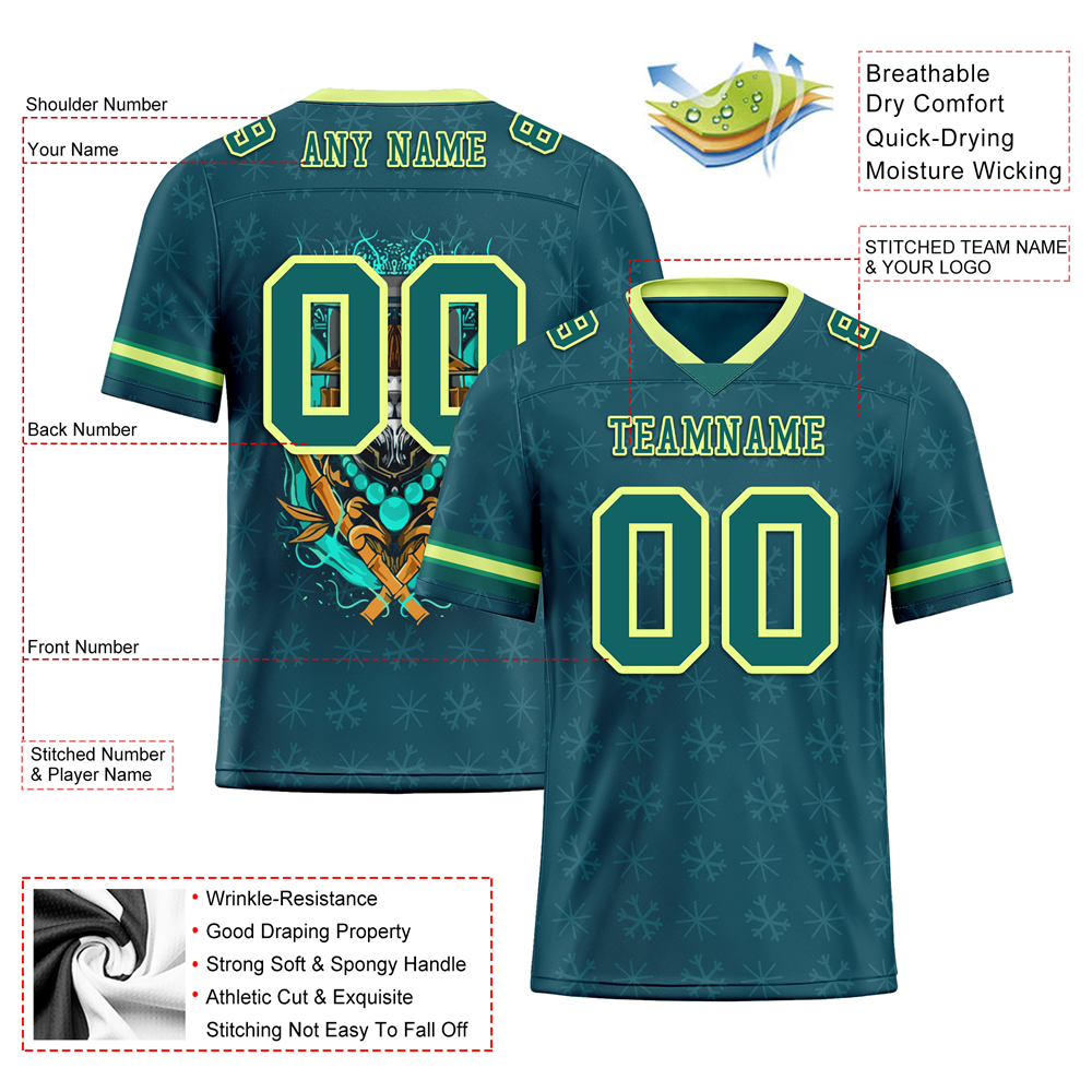 Custom Green Skull Fashion Aqua Personalized Authentic Football Jersey FBJ02-bc0fbb7