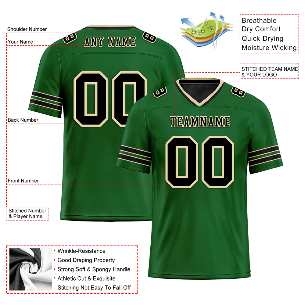 Custom Green Sleeve Stripes Black Personalized Authentic Football Jersey FBJ02-bc0f08e