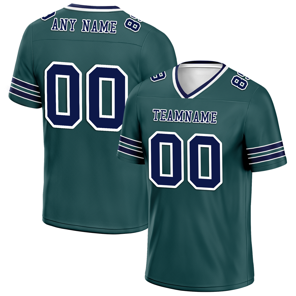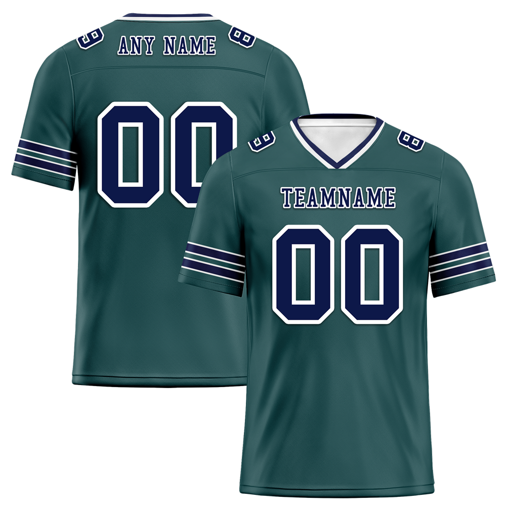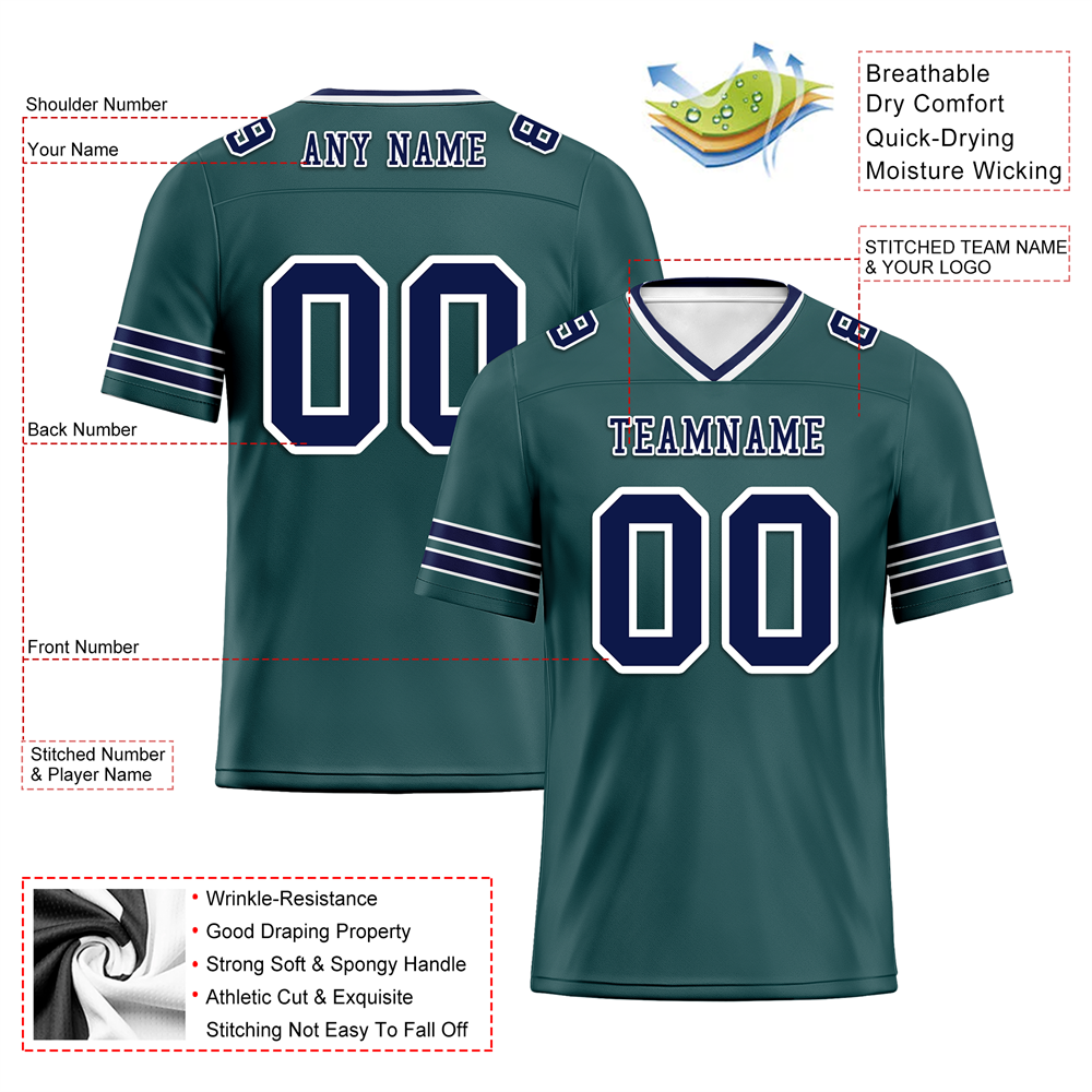 Custom Green Sleeve Stripes Blue Personalized Authentic Football Jersey FBJ02-bc0f088