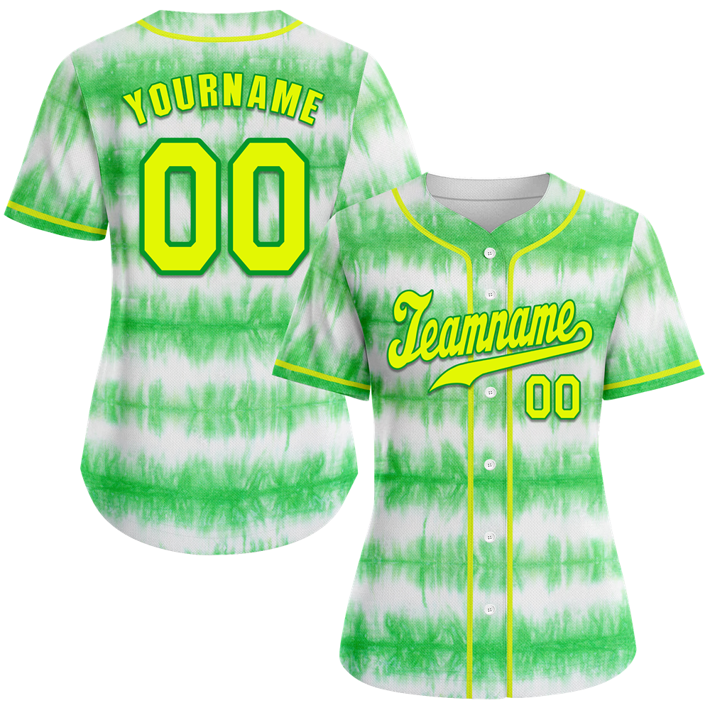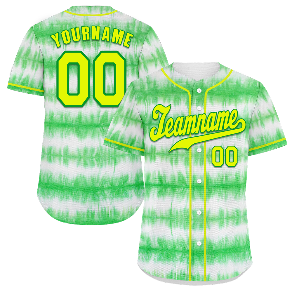 Custom Green Tie Dye Yellow Authentic Baseball Jersey BSBJ0a-bc0fbfb