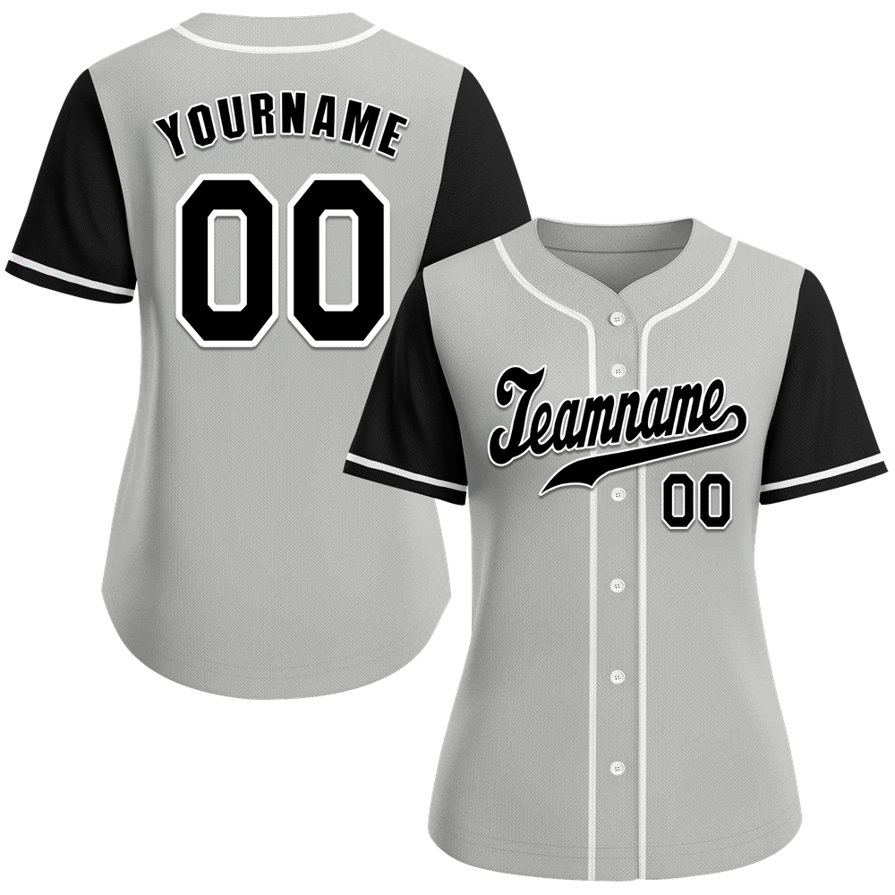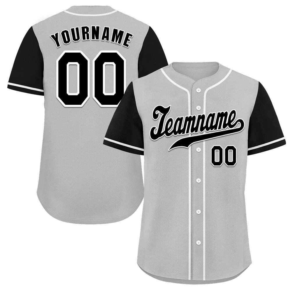 Custom Grey Black Raglan Sleeves Black Authentic Baseball Jersey