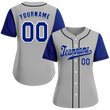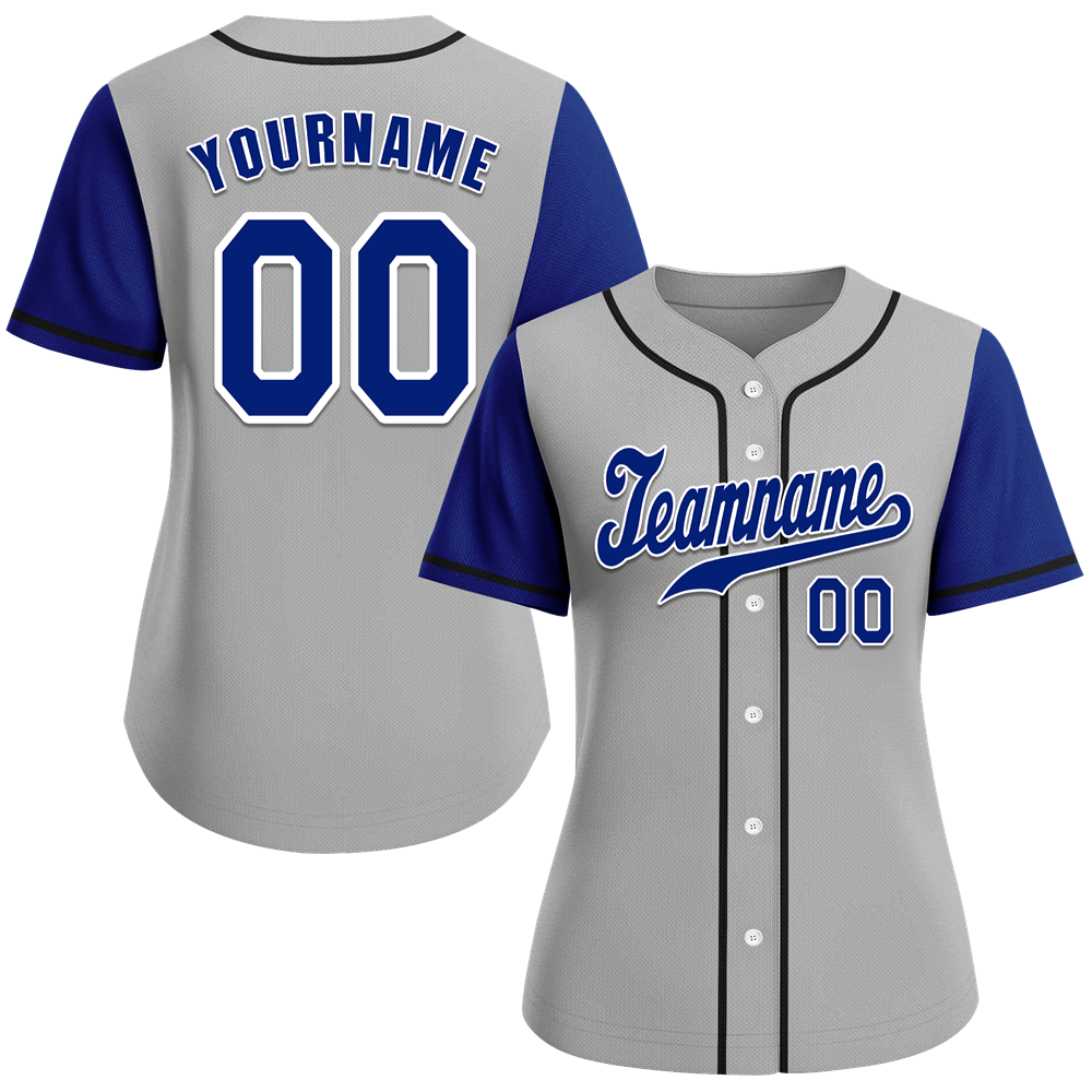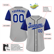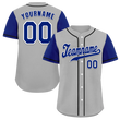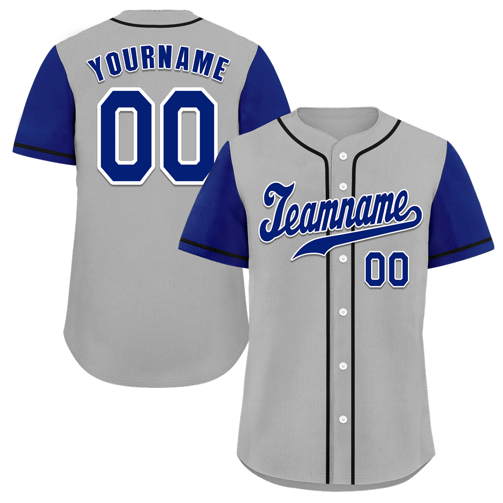Custom Grey Blue Raglan Sleeves Blue Authentic Baseball Jersey