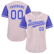 Custom Grey Blue Raglan Sleeves Blue Authentic Baseball Jersey