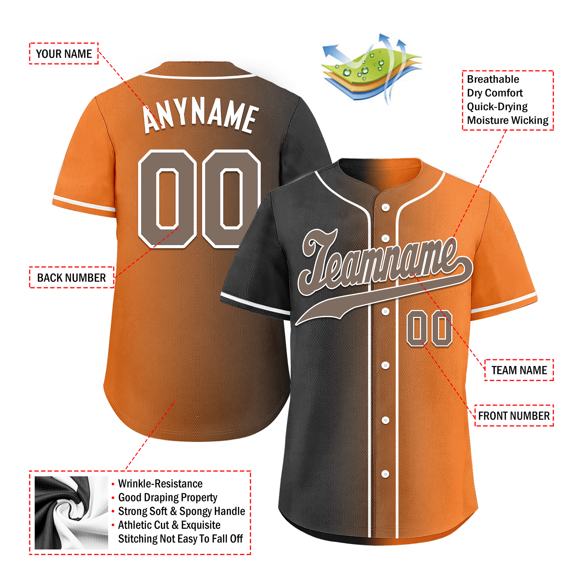 Each CCJ tailored baseball jersey is meticulously personalized with the following features: