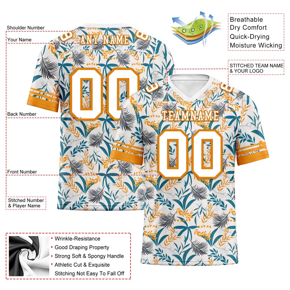 Custom Orange Aqua Hawaii White Personalized Authentic Football Jersey FBJ02-bc0fa9a