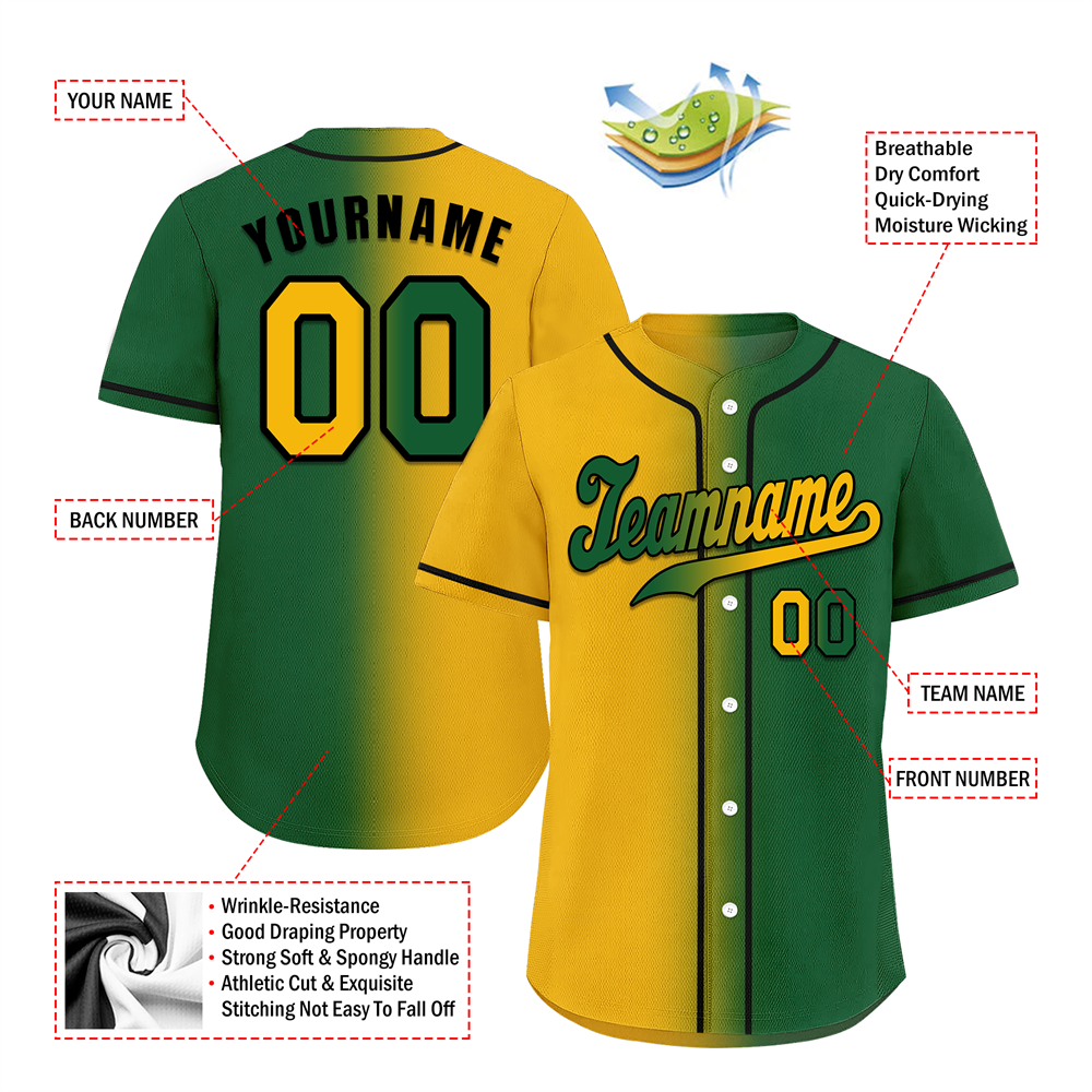 Custom Orange Green Gradient Fashion Green Authentic Baseball Jersey