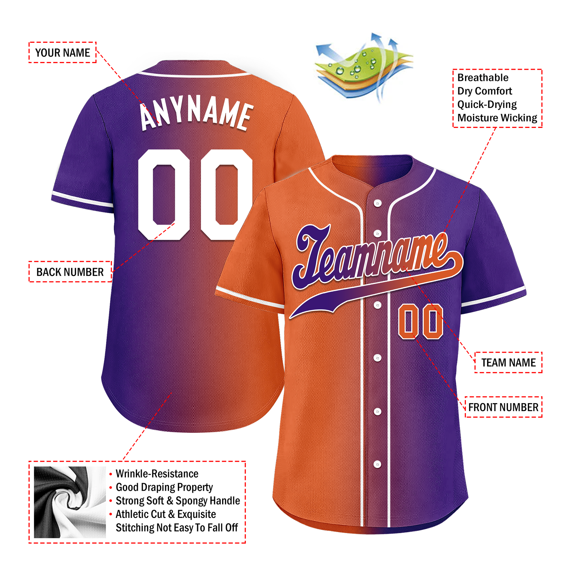 Custom Orange Purple Gradient Fashion Personalized Authentic Baseball Jersey BSBJ01-D0a7a08