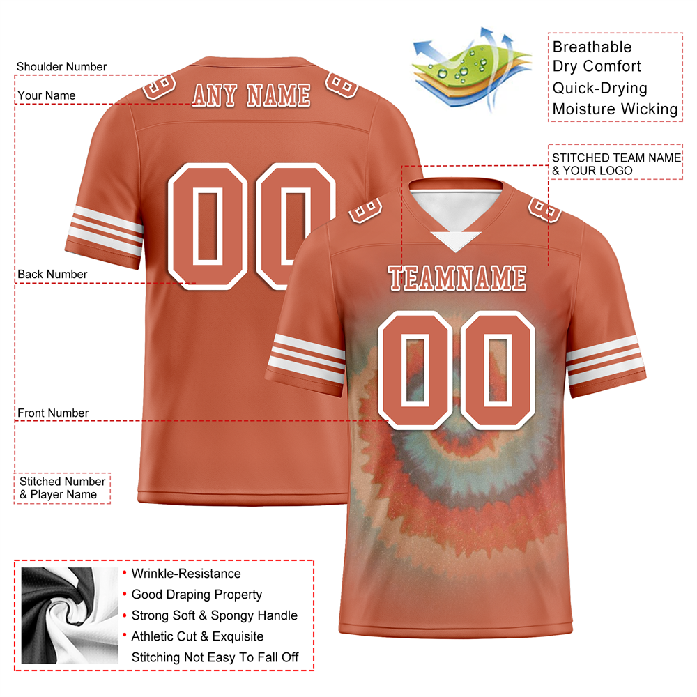 Custom Orange Tie Dye Orange Personalized Authentic Football Jersey FBJ02-bc0fa7d